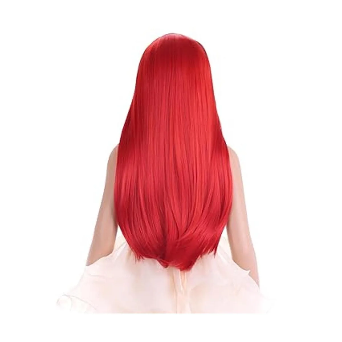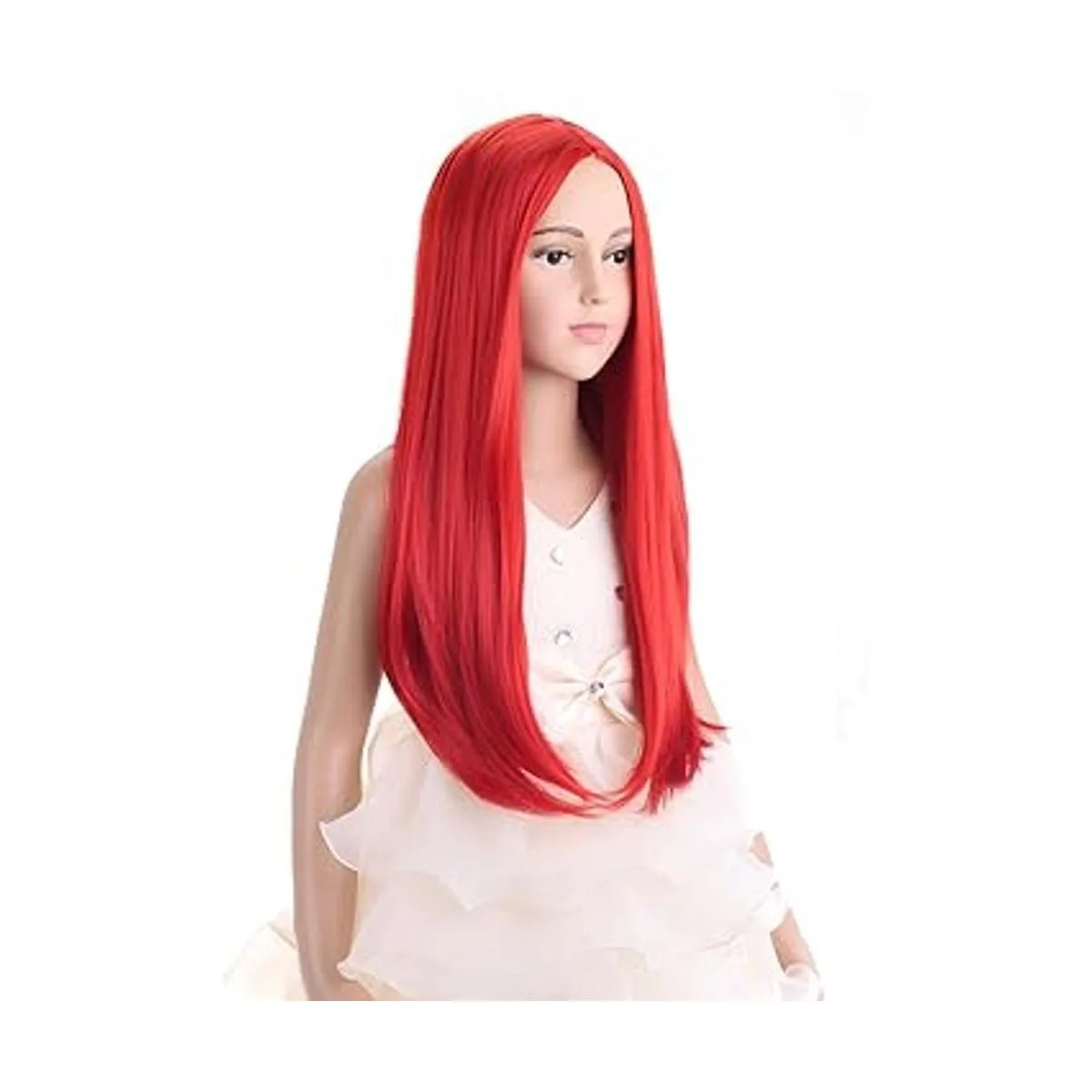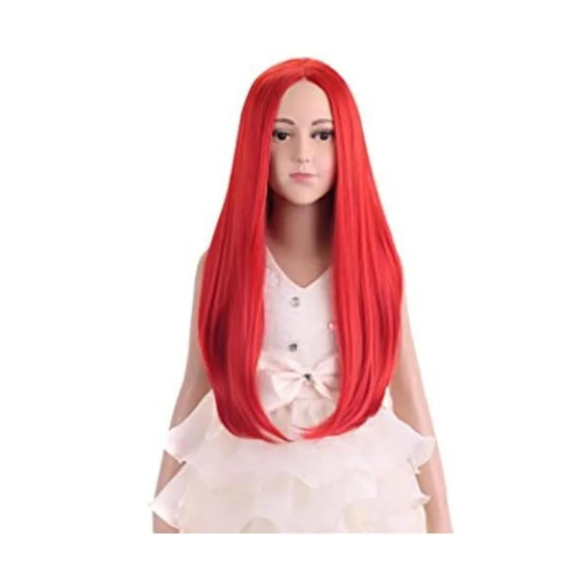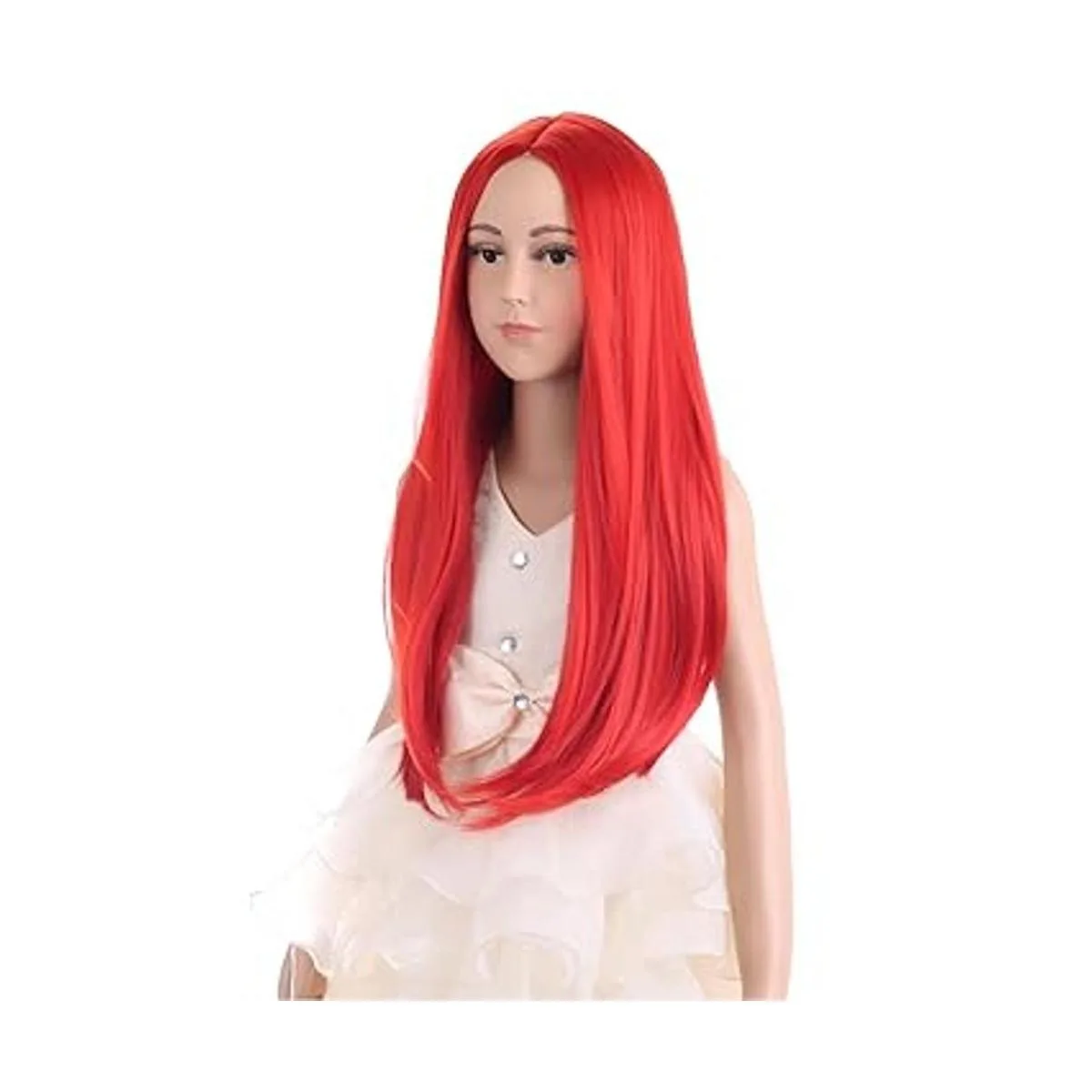PATTNIUM Peluca roja larga y recta para niños, peluca de princesa, peluca rubia para niñas, resistente al calor, peluca sintética para cosplay de Halloween con gorra de peluca rojo