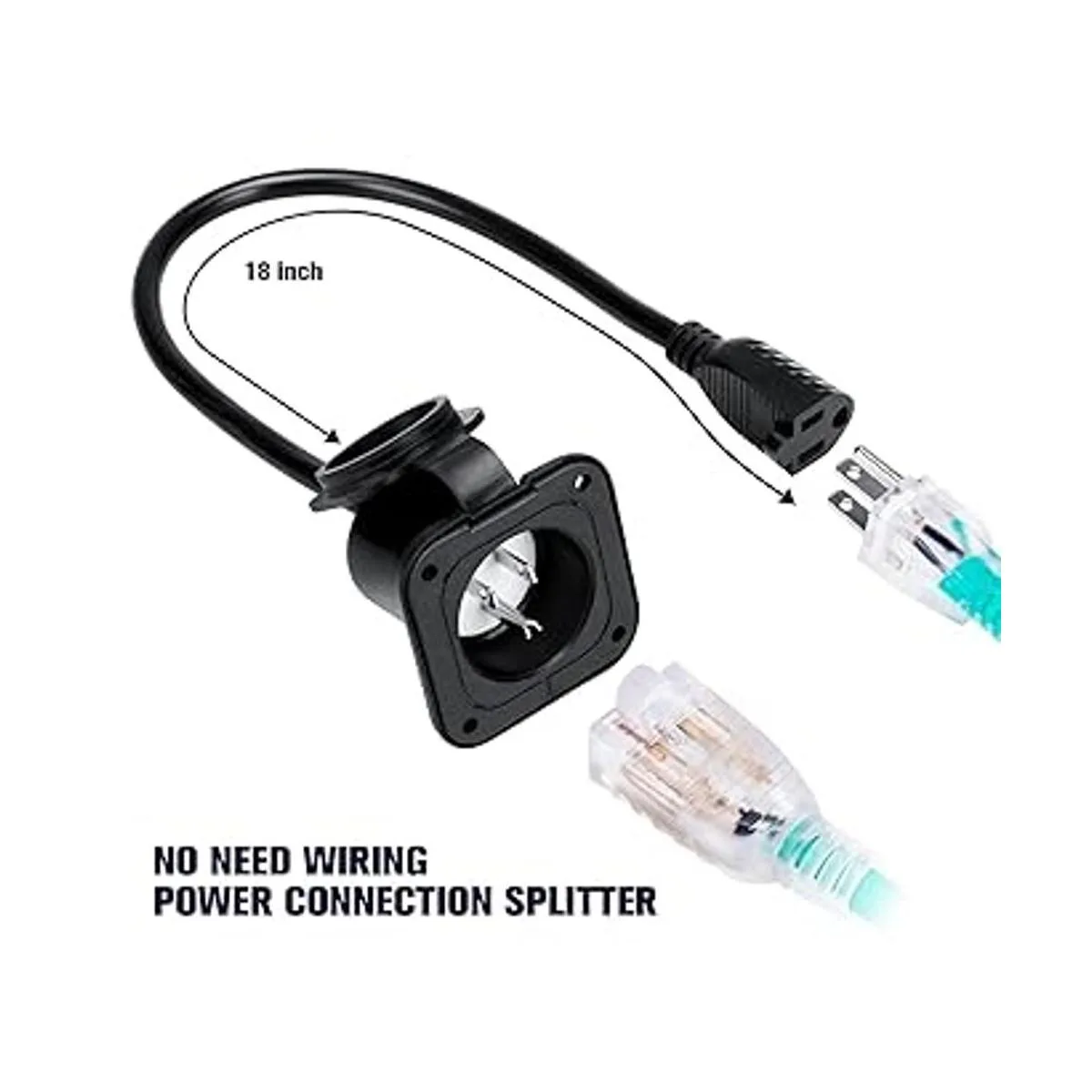Diseñado para ser conectado directamente al cargador. Ampliamente utilizado en remolques, caravanas, coches, barcos, marinas, calentadores de bloques, hogar, parachoques, caja de salida empotrada, etc