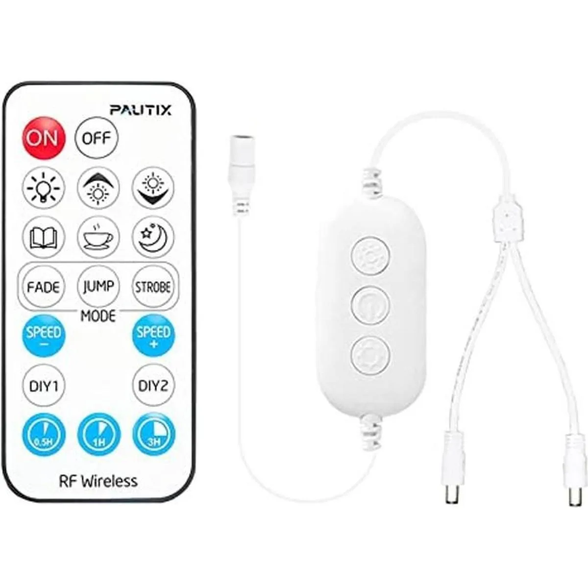 PAUTIX Regulador remoto RF de 2 vías para tira de luces LED de un solo color, control remoto inalámbrico de 18 teclas y controlador en línea CC 524 V para luces de cinta LED 352828355050COB, función de temporizador una a dos vías