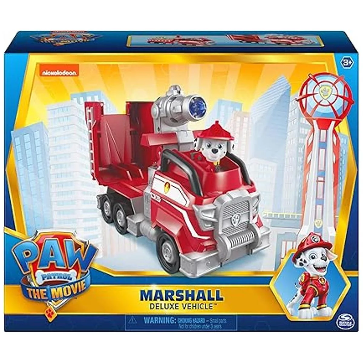 Vehículo de juguete transformable: Presiona hacia abajo el vehículo Deluxe de Marshall y la parte posterior se abre para revelar un lanzador de proyectiles. Todos los vehículos de juguete de la Patrulla Canina tienen su propia transformación única, al igual que la película.