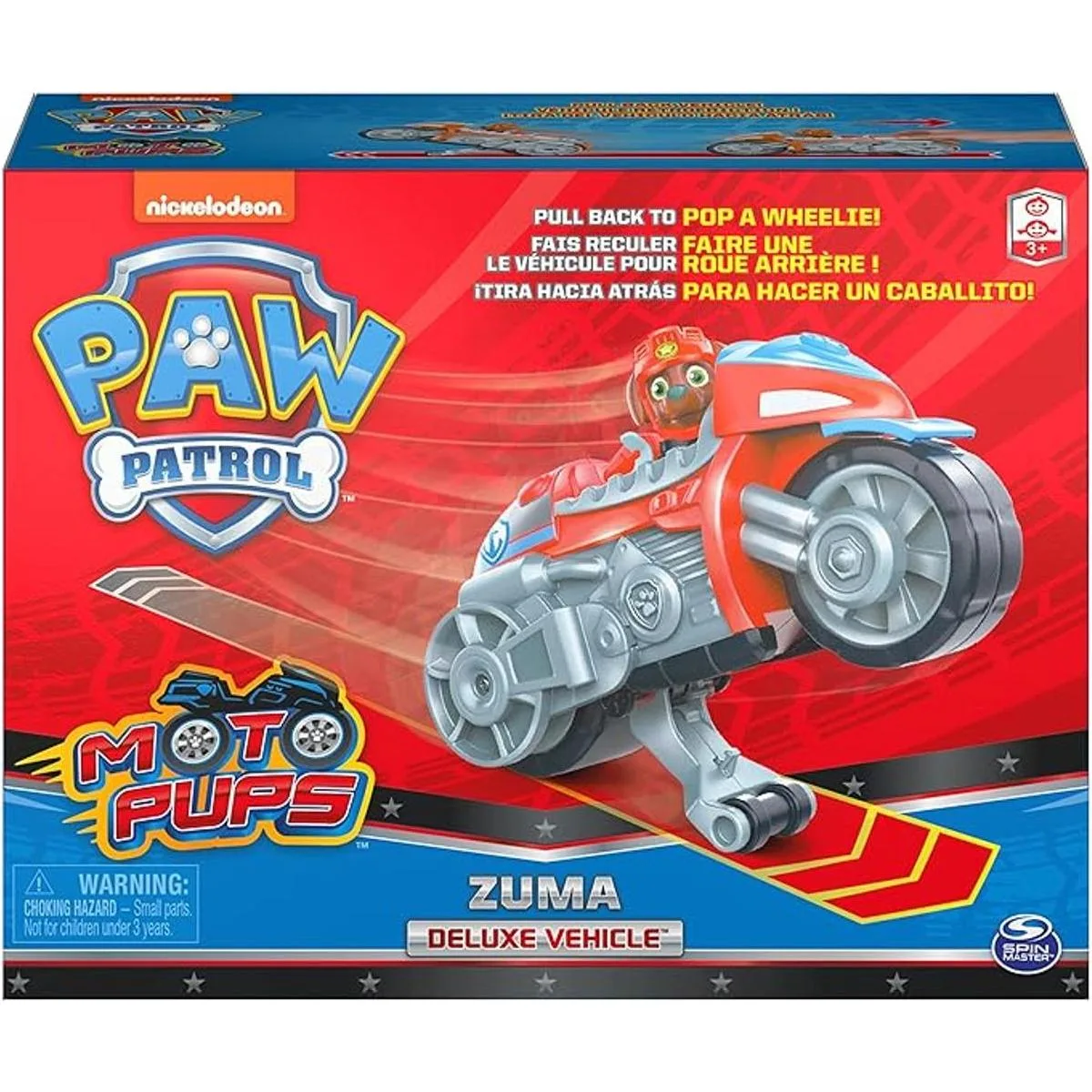 Incluye: 1 figura de Zuma, 1 vehículo Deluxe Moto Pups de Zuma.