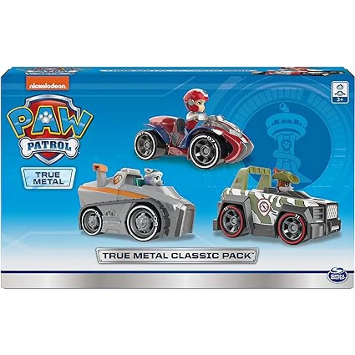 PAW Patrol, True Metal Classic Paquete de 3 vehículos coleccionables fundidos a presión, escala 155