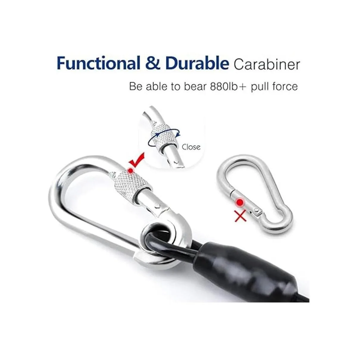 Mosquetón resistente: el mosquetón está hecho de material de hierro galvanizado, con una carga máxima de 881.8 lbs, se puede instalar en varios modelos de coche y se conecta de forma segura a la barra de pestillo de tu vehículo. El uso del mosquetón te hace menos preocuparte por que el cinturón de seguridad se pueda desabrochar fácilmente cuando tus perros pisan el candado.