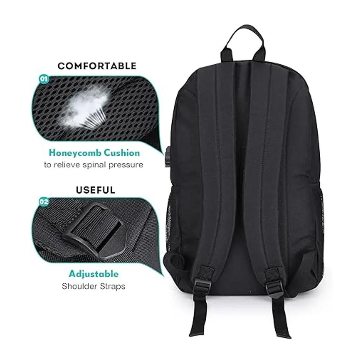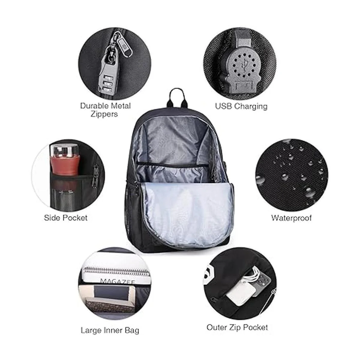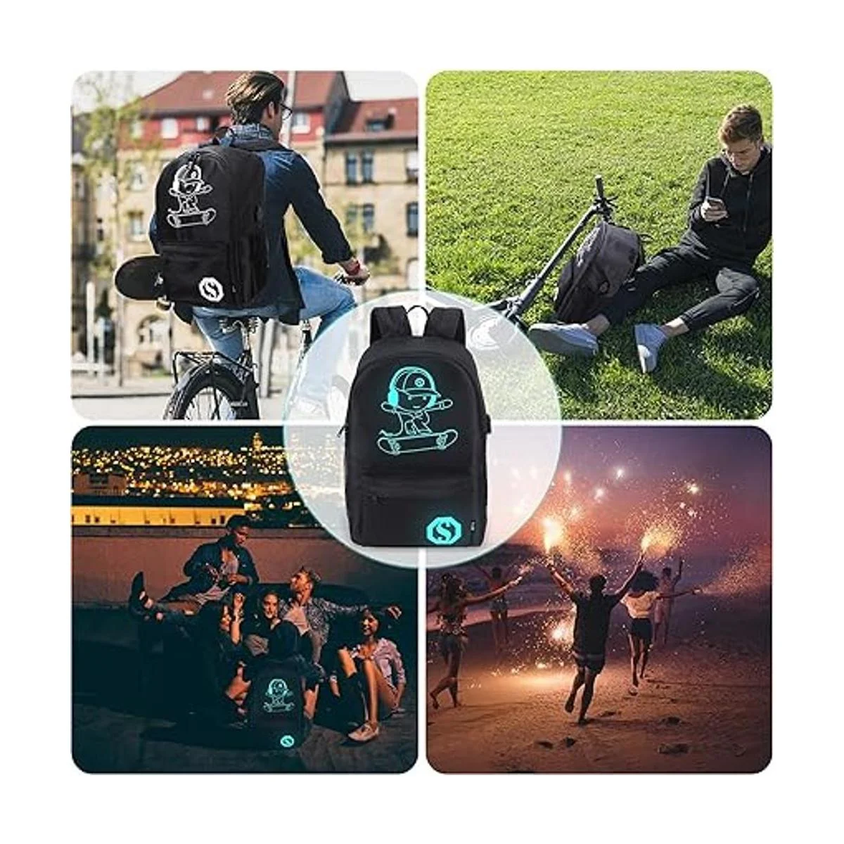 Pawsky Mochila escolar luminosa de anime para monopatín con puerto de carga USB, bloqueo antirrobo, bolsa de cabestrillo y estuche para lápices para adolescentes, niños y niñas, mochila escolar universitaria ligera para laptop, color negro