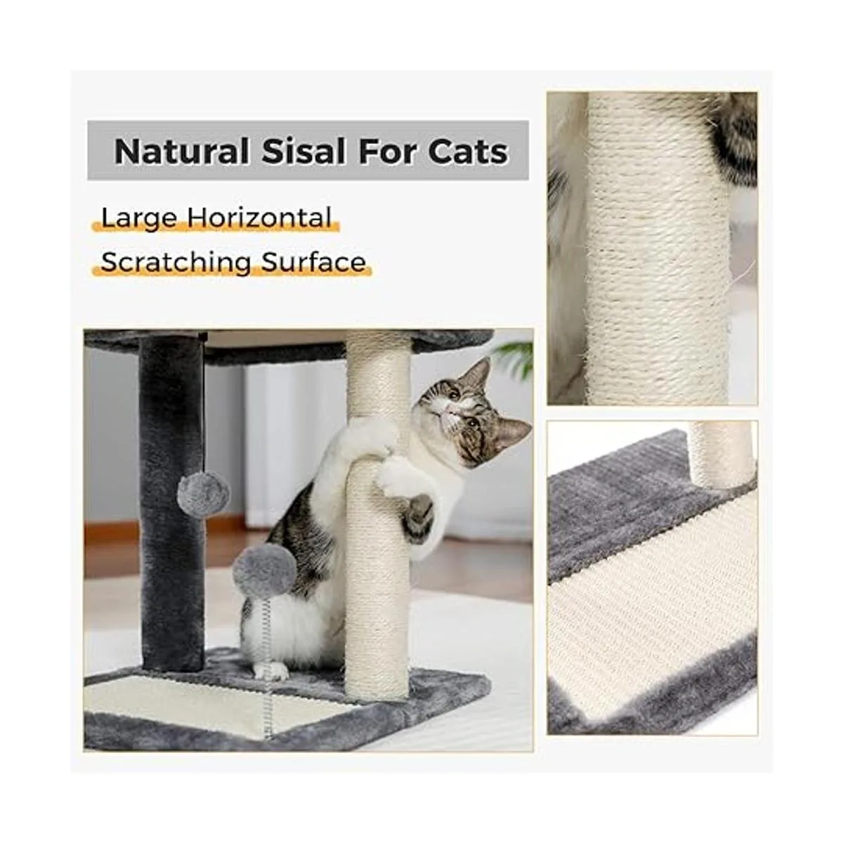 PAWZ Road Poste y almohadilla para rascar gatos, con postes y almohadillas de rascar cubiertos de sisal suaves con bola de juego, ideal para gatitos y gatos