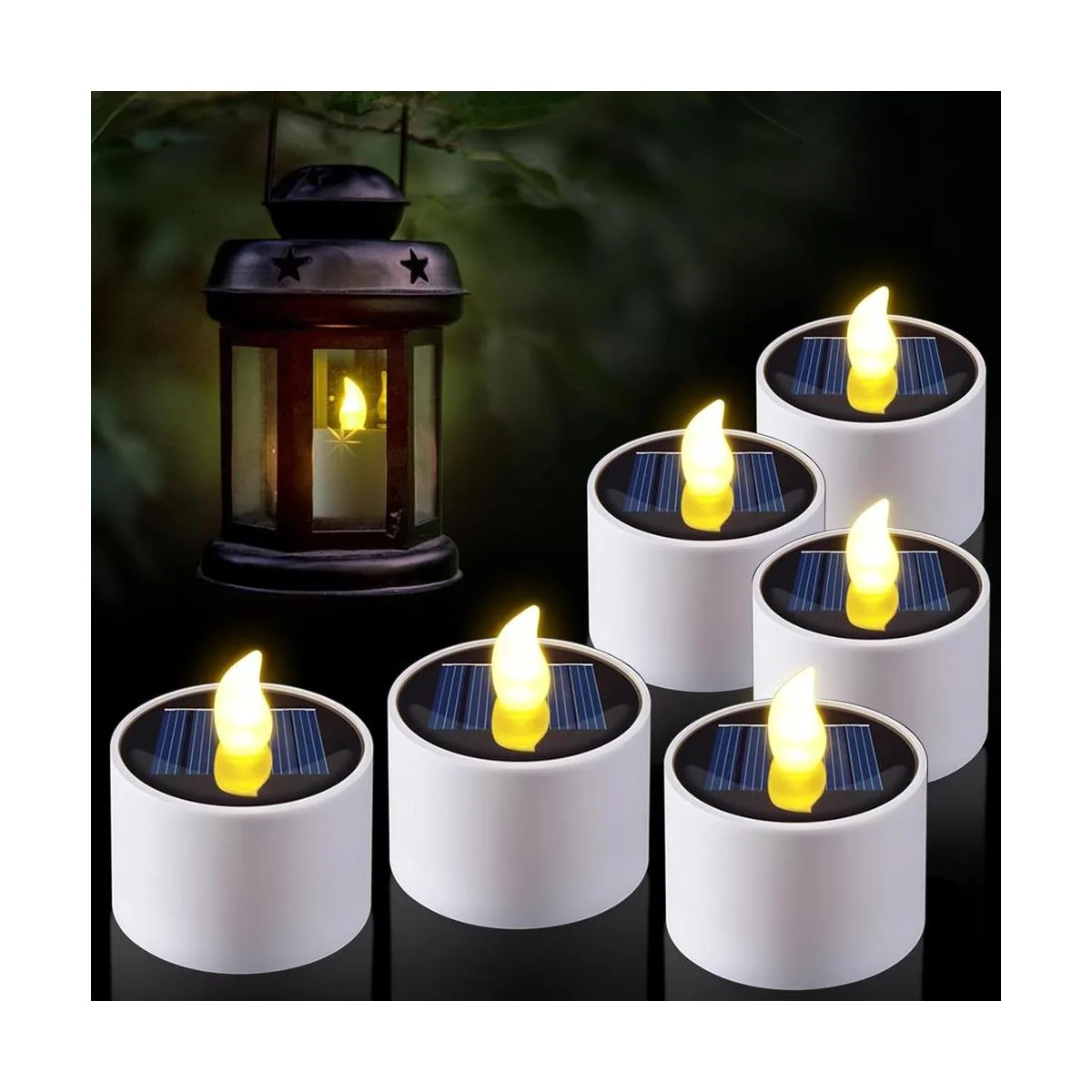 PChero 6 luces solares de té, impermeables, recargables, LED, sin llama, velas de tealight con sensor de luz del atardecer al amanecer, para ventana de farol, camping, emergencia, decoración del hogar