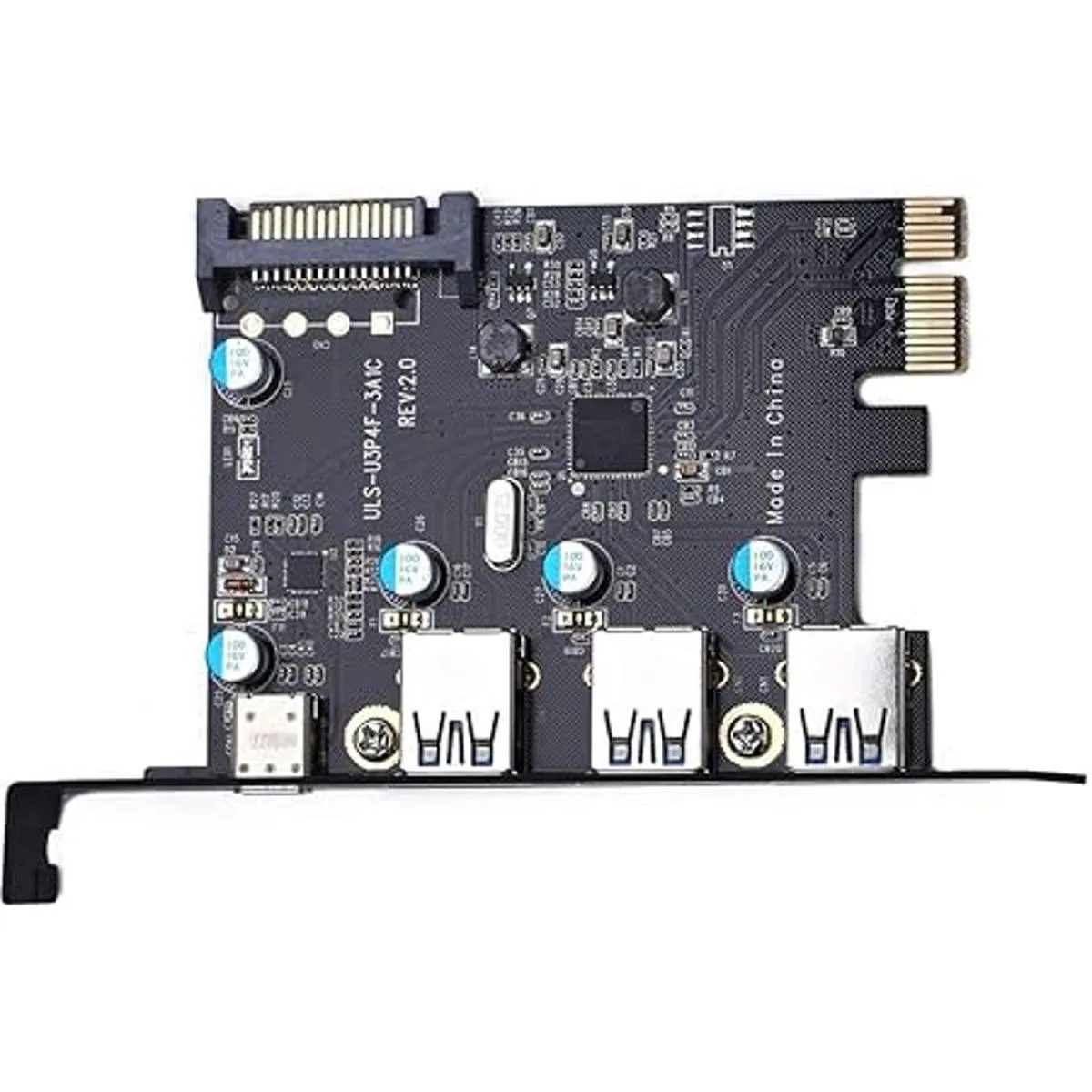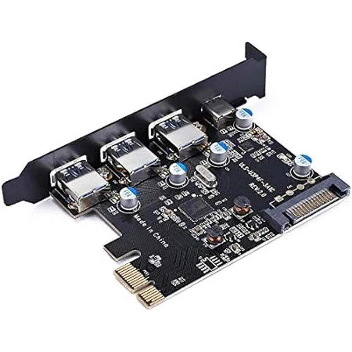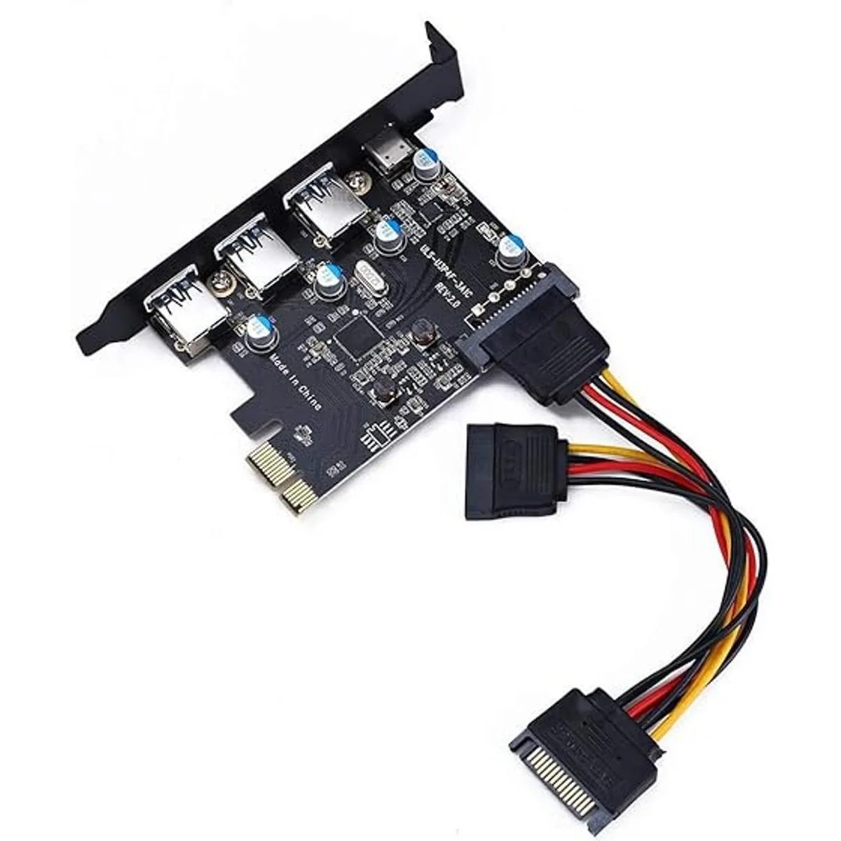 PCI Express PCIe a USB 3.0 tipo C tarjeta de expansión tipo A, PCIE a USB Addon tarjetas con 4 puertos USB 15 pines SATA conector de alimentación para PC de sobremesa