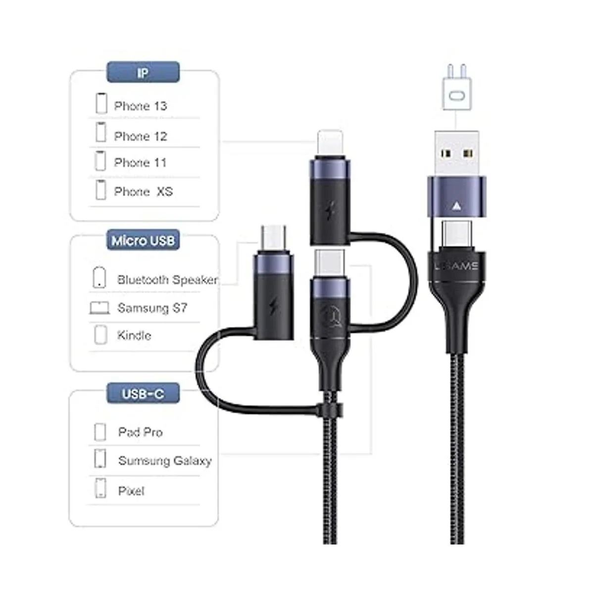 Compatibilidad universal 5 en 1: equipado con todos los conectores de carga esenciales, con IP, USBC, microconectores, este cable carga teléfonos inteligentes IP y Android, tabletas y todos los demás dispositivos alimentados por USB. 1 cable para todos tus dispositivos