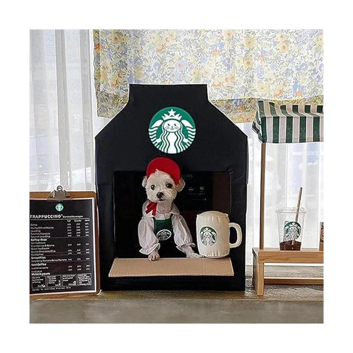 Logotipo impreso único : el patrón único Petbucks en la parte superior hace que este delantal sea más especial, lo que permite que tu perro te haga una taza de café, y también es muy adecuado para tomar fotos de tu perro. Esta ropa para mascotas bien diseñada hará que tus mascotas estén a la moda y llamativas entre la multitud.