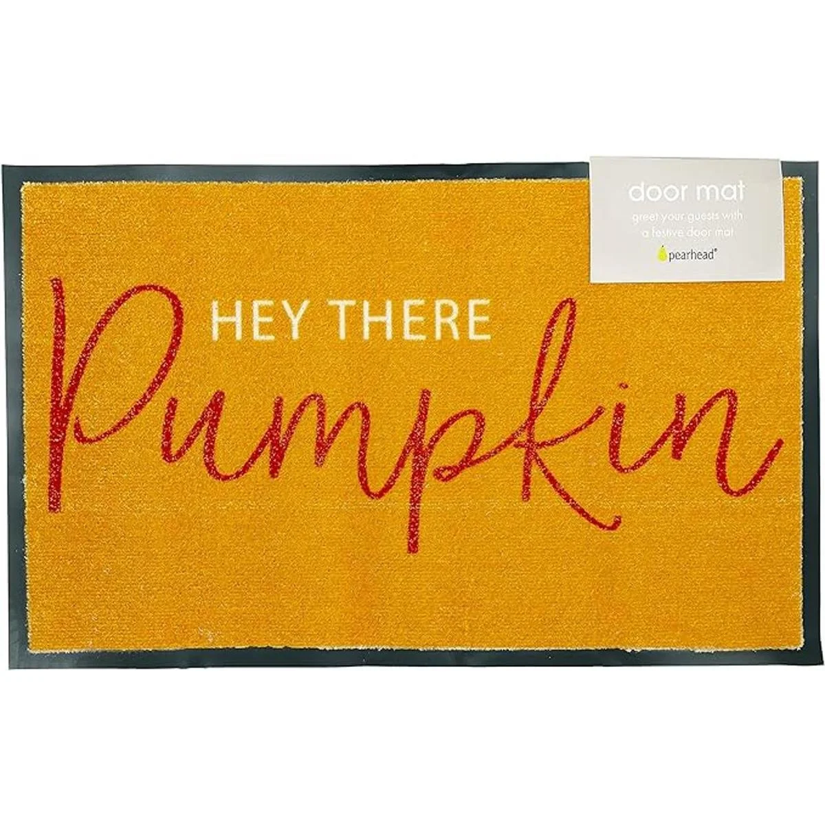 Pearhead Hey, Tapete de goma antideslizante para puerta de Halloween, para exteriores, tapete de calabaza
