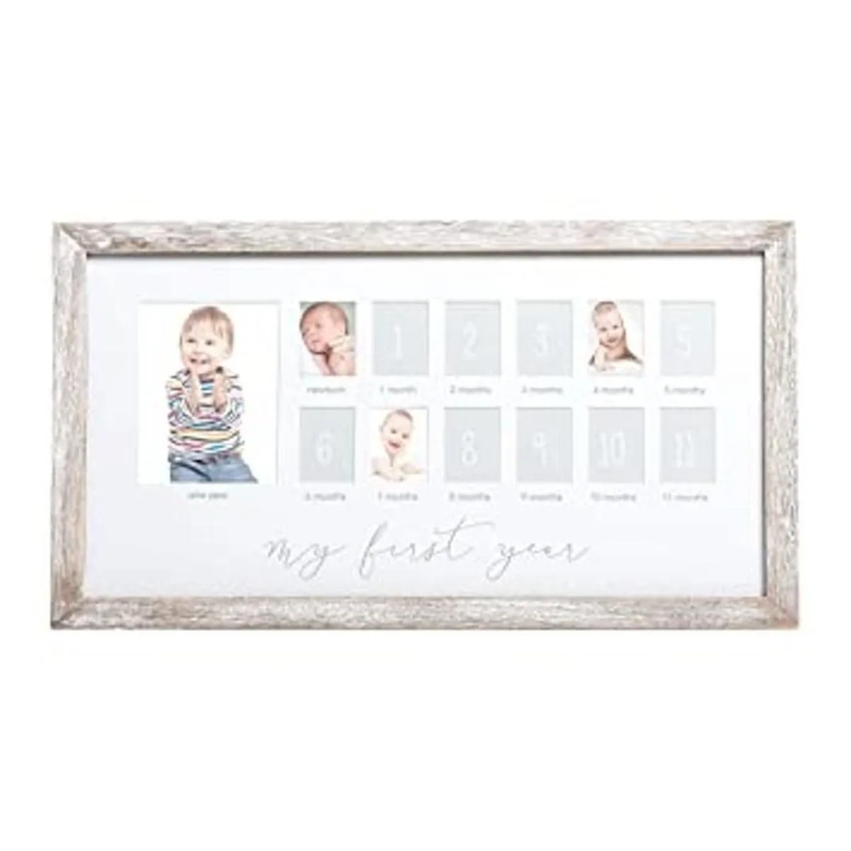 Pearhead My First Year Photo Moments Marco de fotos de recuerdo de bebé, marco de fotos para el primer año del bebé, accesorio para el día de la madre, decoración de habitación de bebé, rústico