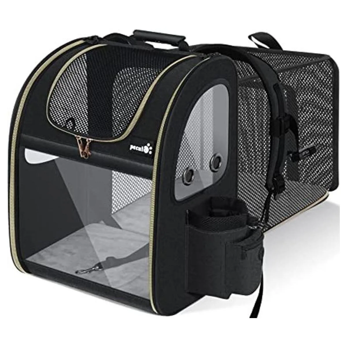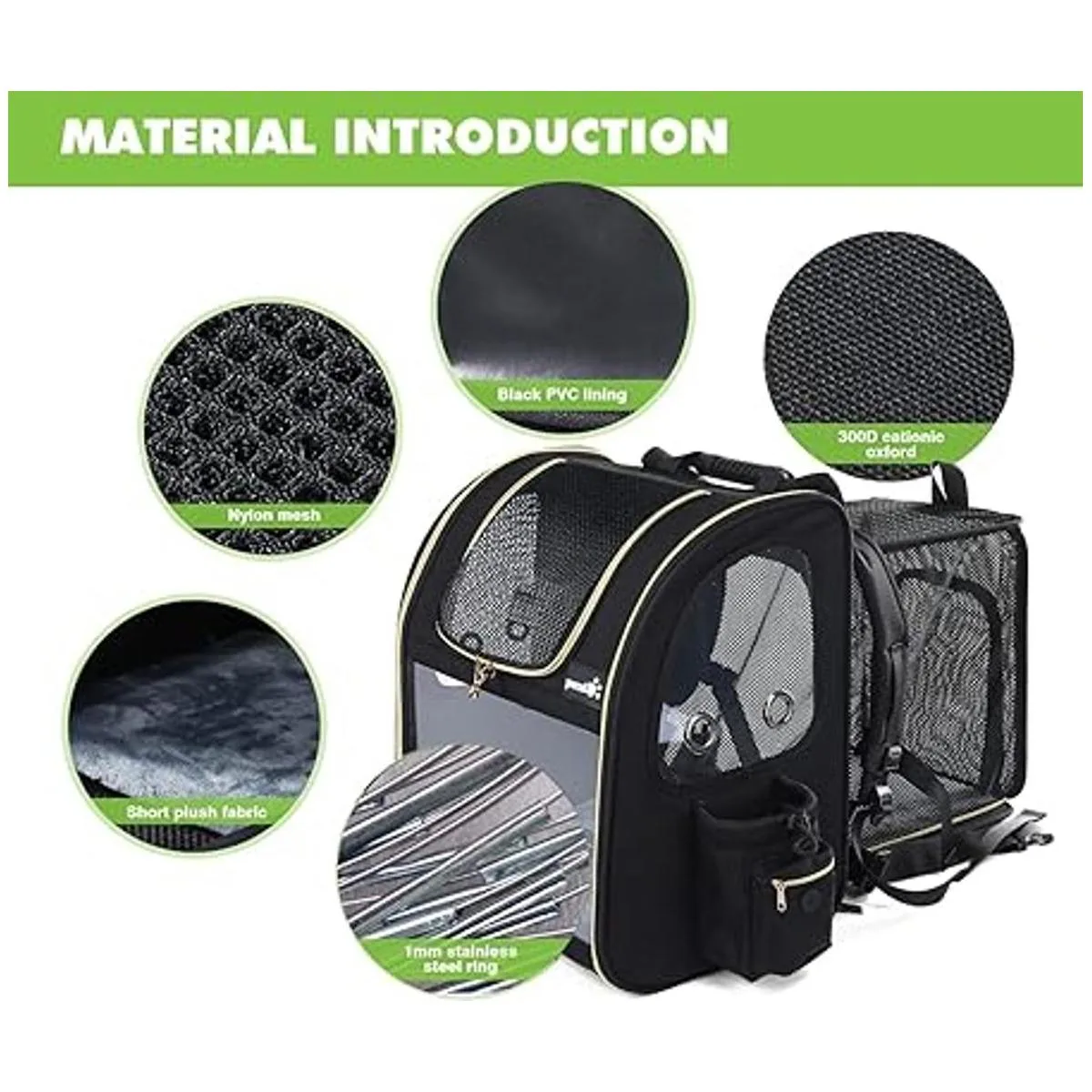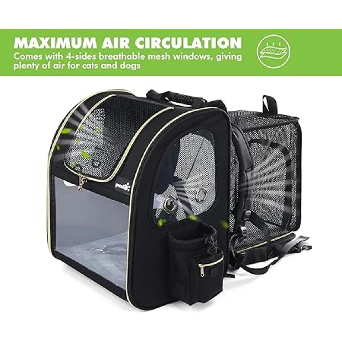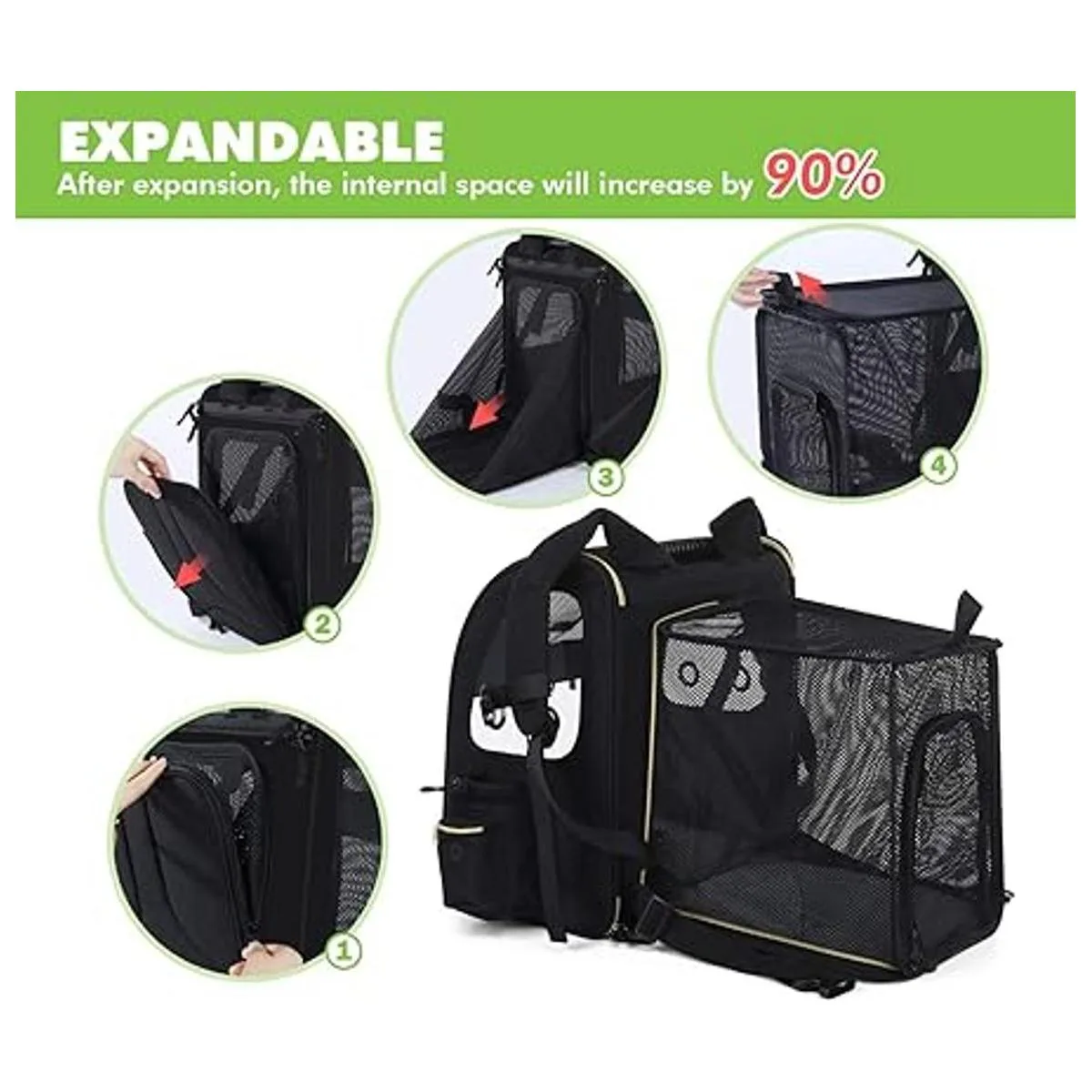Diseño extensible Este transportín de mascotas con un diseño de espalda expandible le da a tu mascota más espacio para descansar y aumentar la circulación del aire, permite que tu mascota se mueva más cómodamente y reduce la ansiedad.
