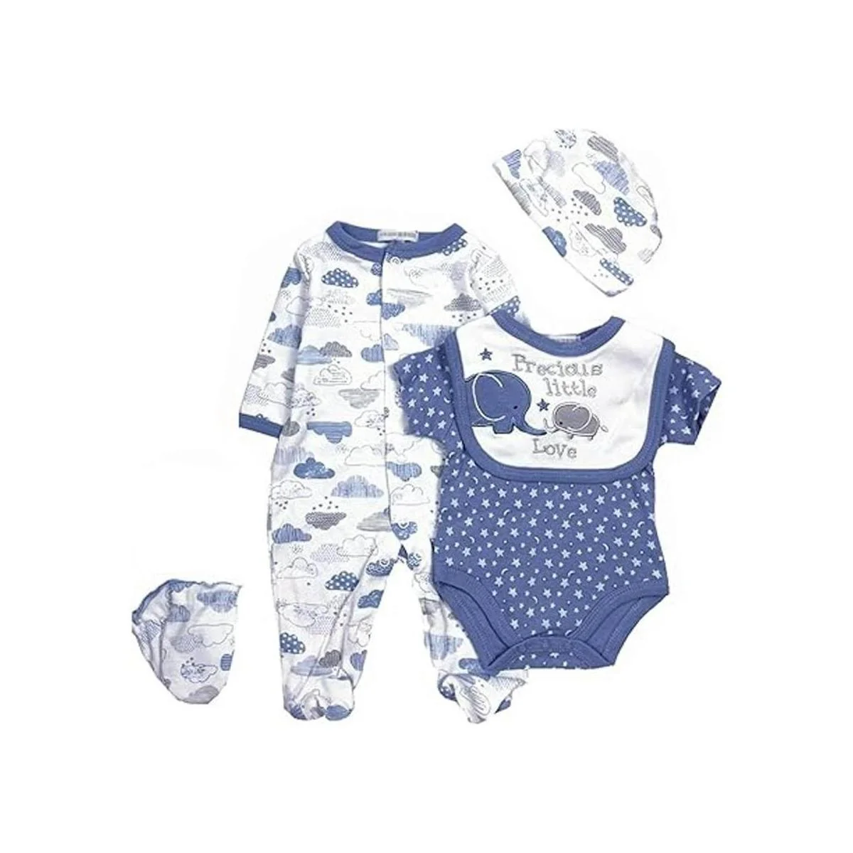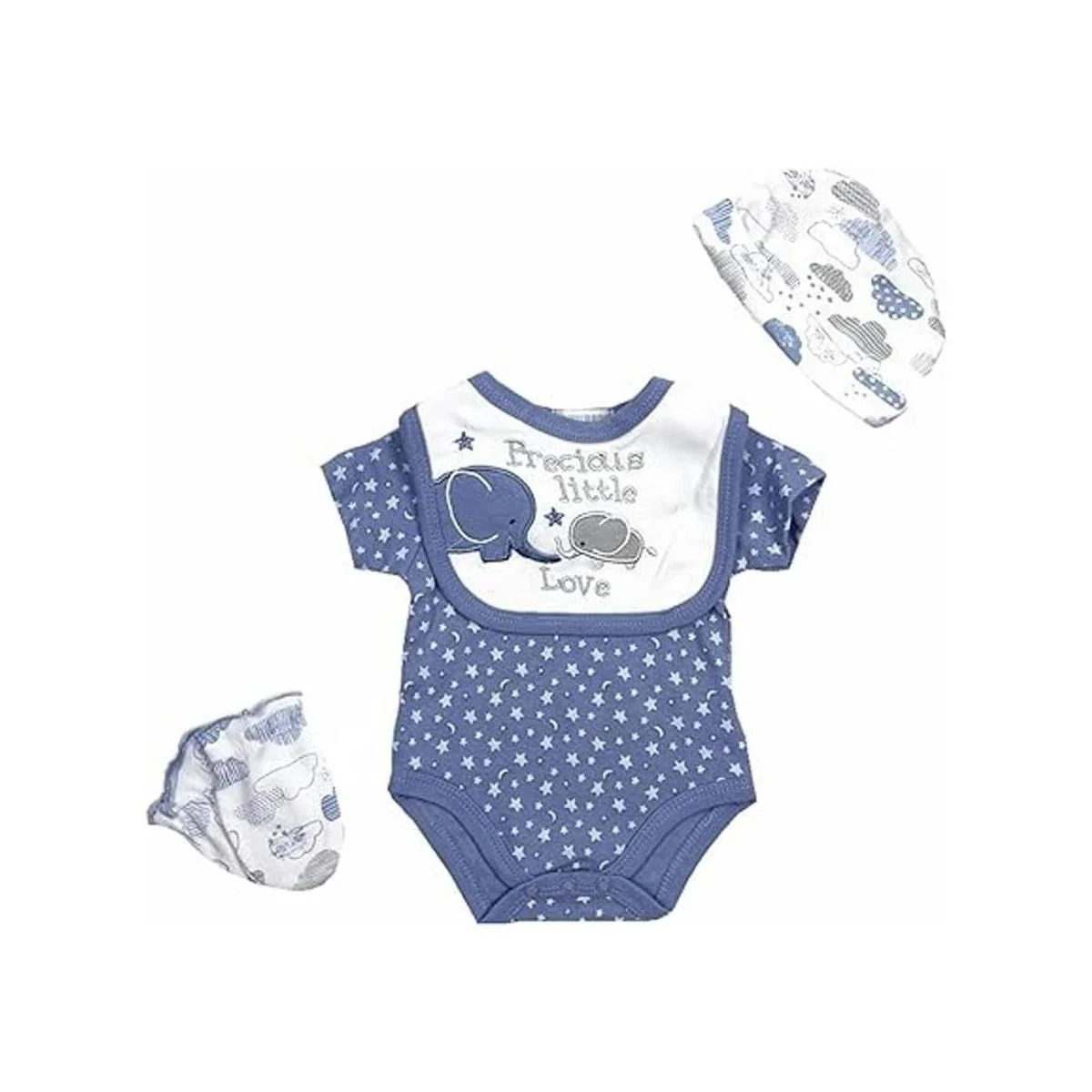 El paquete incluye: 1 sombrero, 1 babero, 1 mono, 1 pelele, 1 guante. La muñeca se vende por separado.