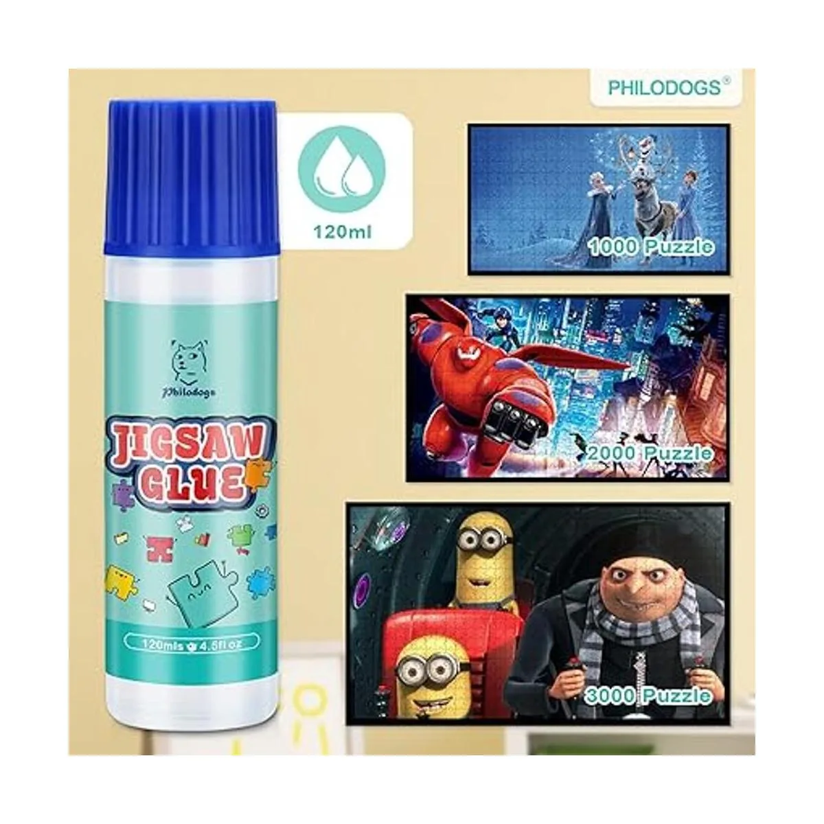 Pegamento de rompecabezas con aplicador adecuado para 100015003000 piezas de rompecabezas para papel y madera, botella de 4.1 fl oz, soluble en agua, hojas de pegamento para rompecabezas especiales para adultos