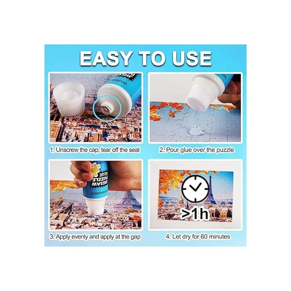 Material seguro y excelente calidad: el pegamento para rompecabezas WUNHUNEW utiliza material PVA respetuoso con el medio ambiente, ha pasado la prueba de seguridad internacional. Altamente transparente, sin olor peculiar, fuerte adherencia No solo para adultos, los niños también pueden usarlo con confianza, conserva perfectamente tus obras maestras