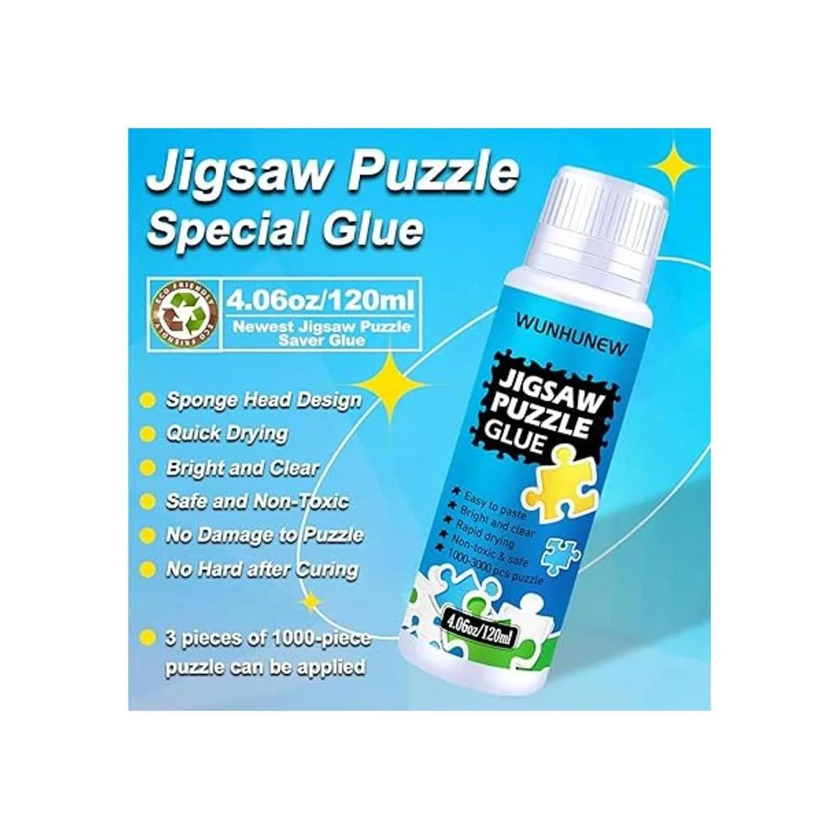 Pegamento transparente para rompecabezas más nuevo con aplicador de cabeza de esponja, marco de ahorro de rompecabezas para rompecabezas de 100015003000 piezas, rompecabezas de papel y madera, pegamento especial soluble en agua, para manualidades, rompecabezas de secado rápido 4.1 fl oz