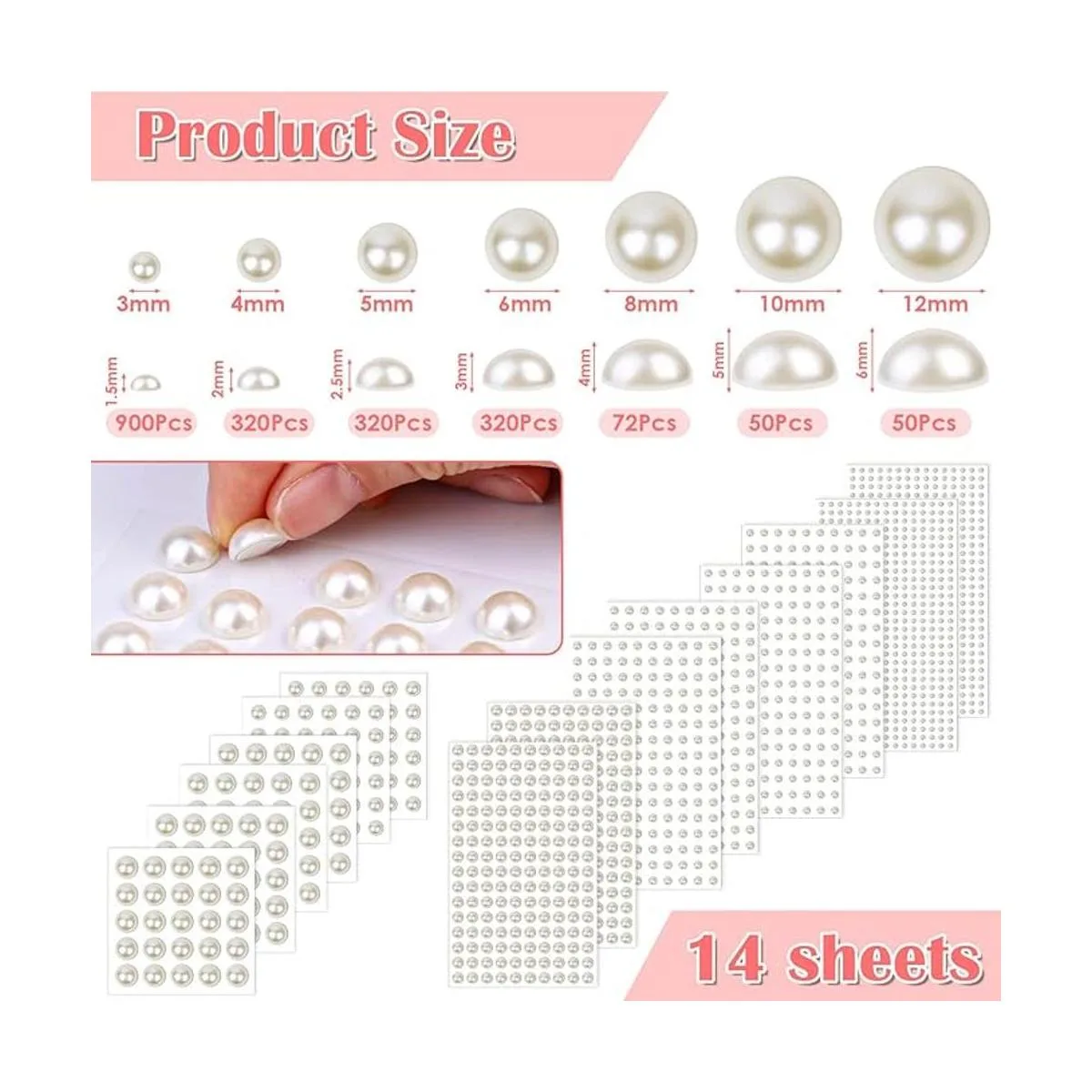 Tamaños surtidos: recibirás 14 hojas de calcomanías de perlas, un total de 2032 piezas de perlas adhesivas en 7 tamaños, incluyendo 900 piezas de 0.118 in, 320 piezas de 0.157 in, 320 piezas de 0.197 in, 320 piezas de 0.236 in, 72 piezas de 0.315 in, 50 piezas de 0.394 in, 50 piezas de 0.472 in, cantidad suficiente y varios tamaños para satisfacer tus varios necesidades de proyectos de maquillaje y manualidades