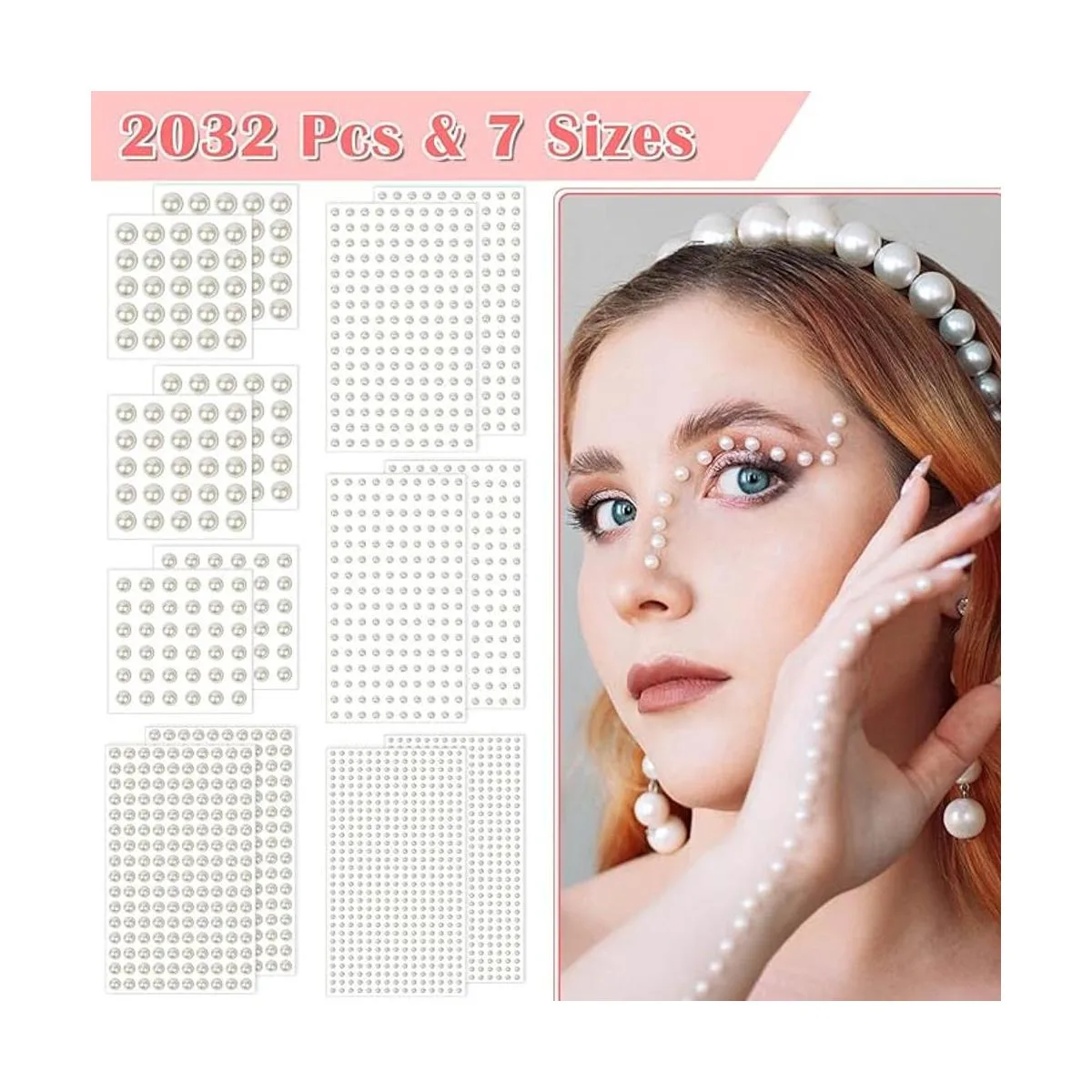 Pegatinas autoadhesivas de perlas para el cabello, Cridoz 2032 piezas adhesivas para cabello, cara, maquillaje, ojos, uñas, manualidades