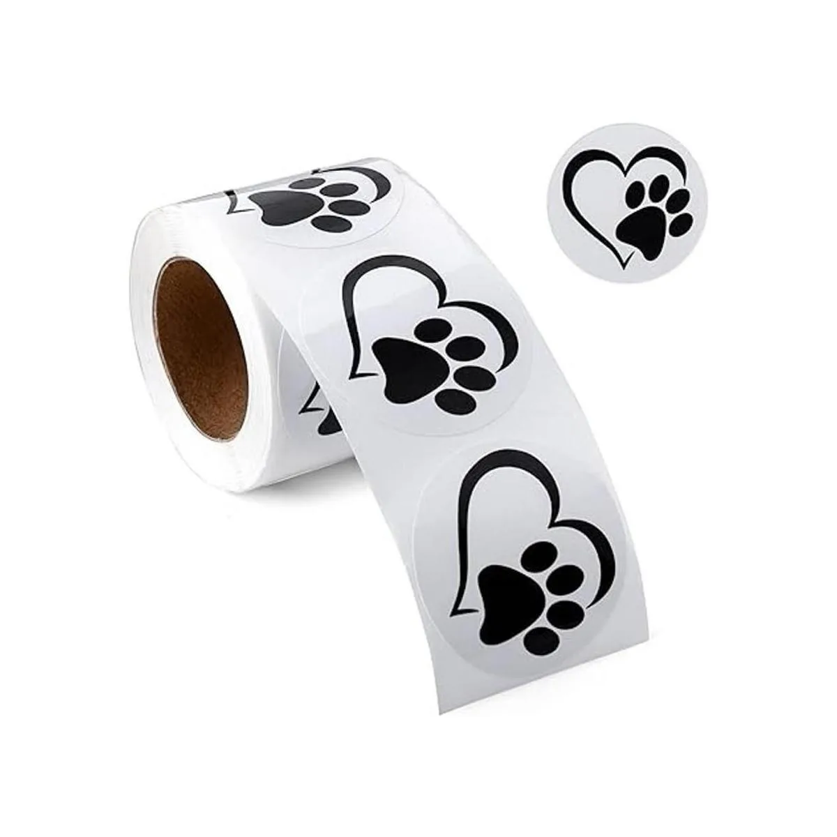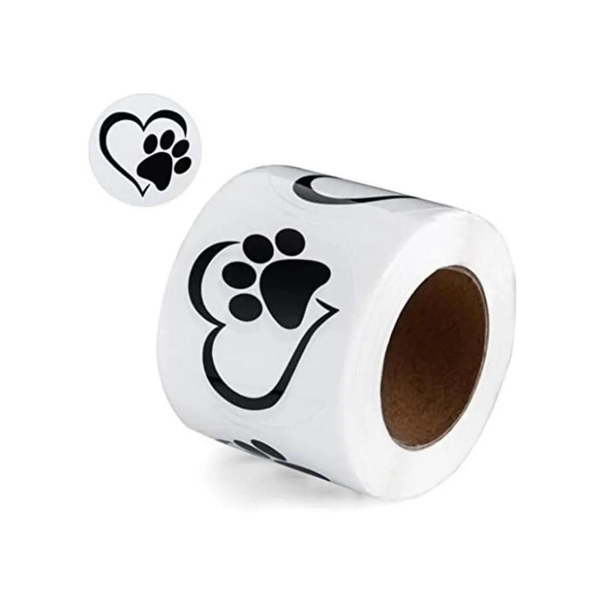Pegatinas con forma de corazón con estampado de patas para concienciación de la crueldad animal, calcomanías para amantes de las mascotas, empresas de mascotas, clínicas de animales, etiquetas, álbumes de recortes y mucho más 1 rollo, 250 calcomanías