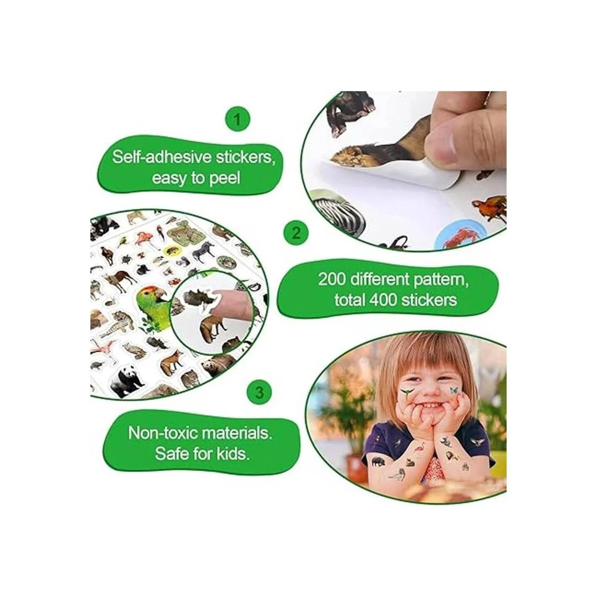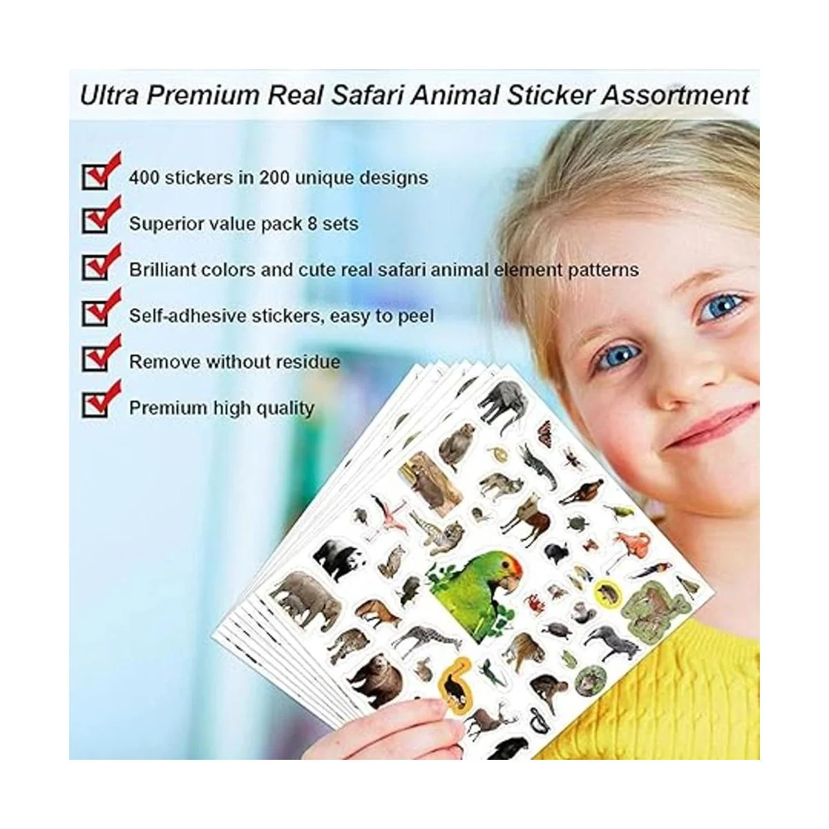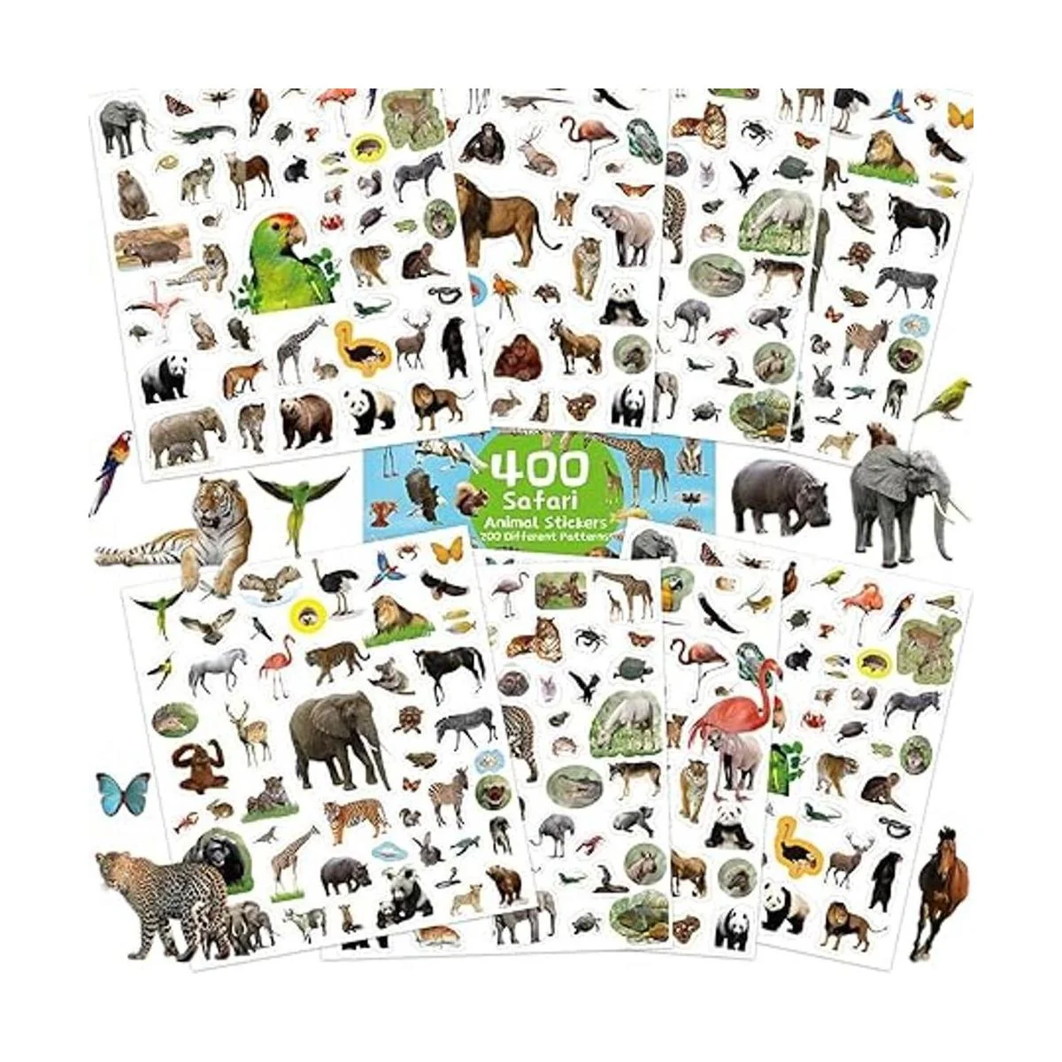 Pegatinas de animales de la selva 400 animales safari, surtido de 8 hojas