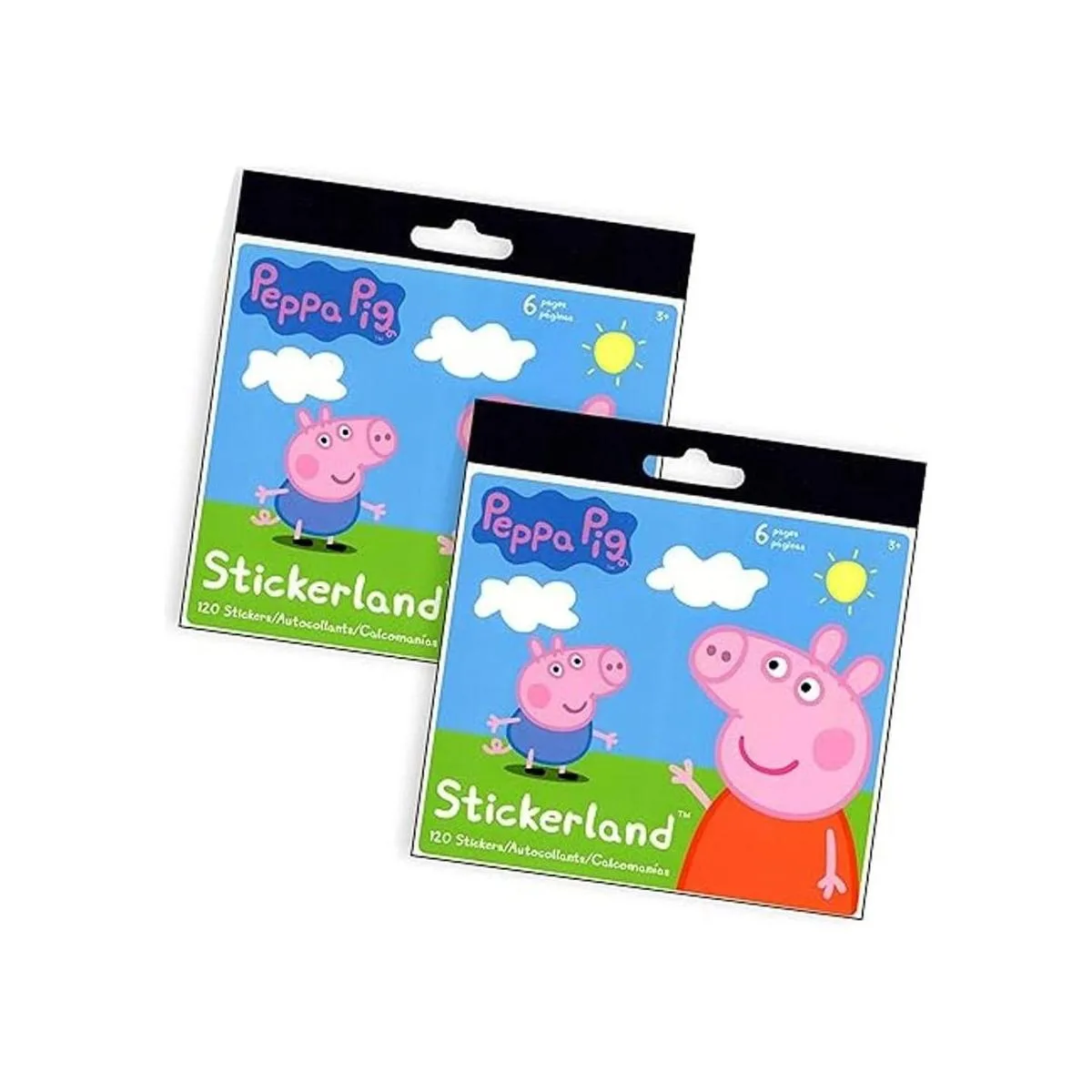 Juego de 2 pegatinas de fiesta Peppa. Cada paquete tiene 6 hojas de calcomanías, para un total de 12 hojas individuales. Las sábanas miden 4 x 4.5 pulgadas.