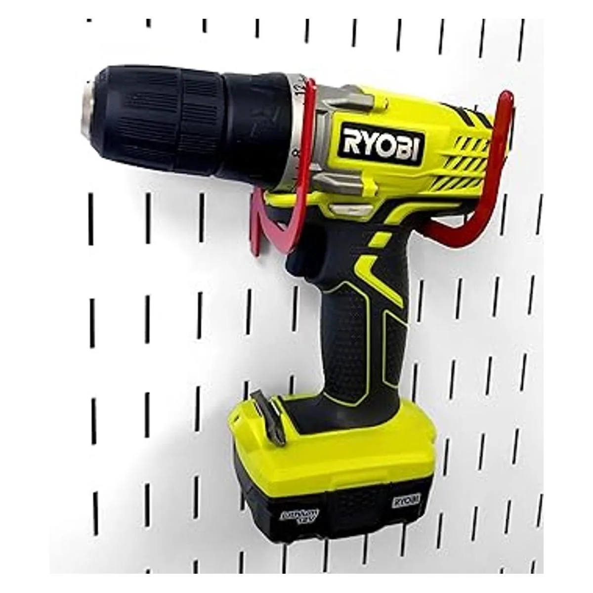 Clavijas seguras para sujetar taladros, martillos, cuerdas, cables de extensión y más en el tablero de clavijas de control de pared.