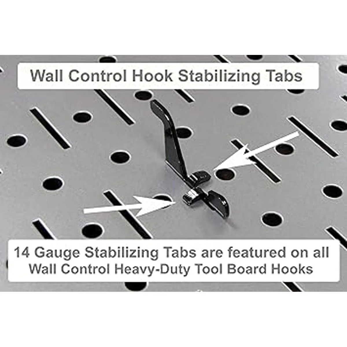 Solo compatible con panel de clavijas de la marca Wall Control. Los ganchos ranurados son más seguros que las pinzas redondas.
