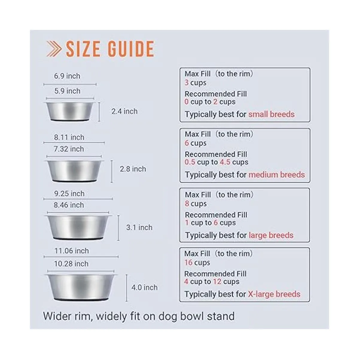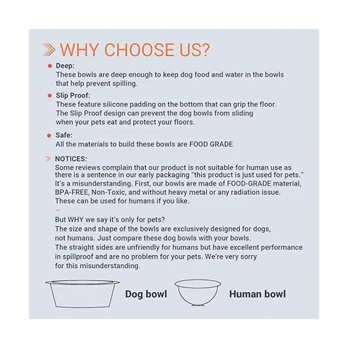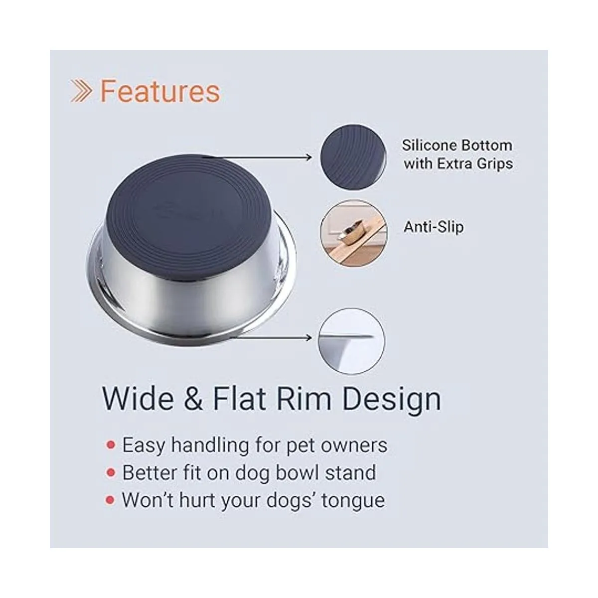 Calidad y seguridad: los tazones para perros están hechos de acero inoxidable de alta calidad con un acabado pulido de alta gama que los hace más resistentes, más duraderos y tienen un mejor rendimiento resistente a las manchas y al óxido. En comparación con los tazones de plástico o cerámica para perros, estos son absolutamente una mejor alternativa.