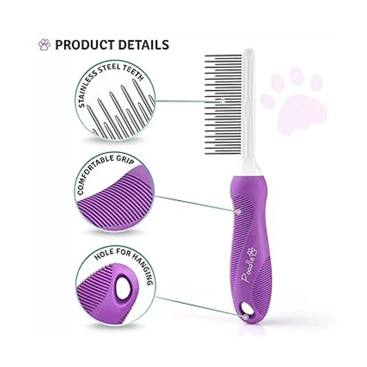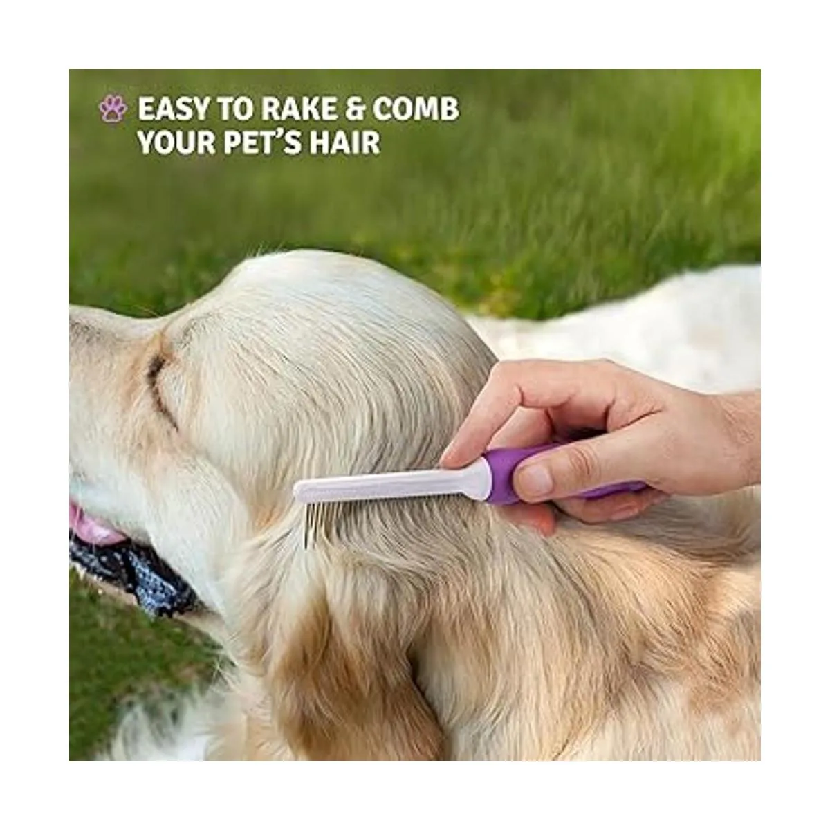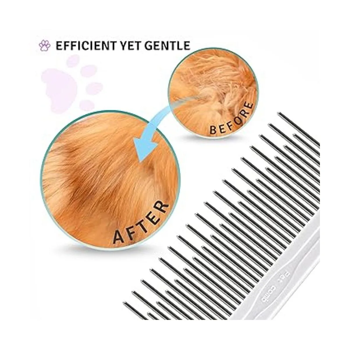 Peine desenredante 2 en 1: simplifica el proceso de aseo mediante el uso de nuestros peines para mascotas de doble longitud para desenredar, desenredar y peinar. Cuenta con dientes de metal largos y cortos, por lo que reduce el tiempo en la mitad