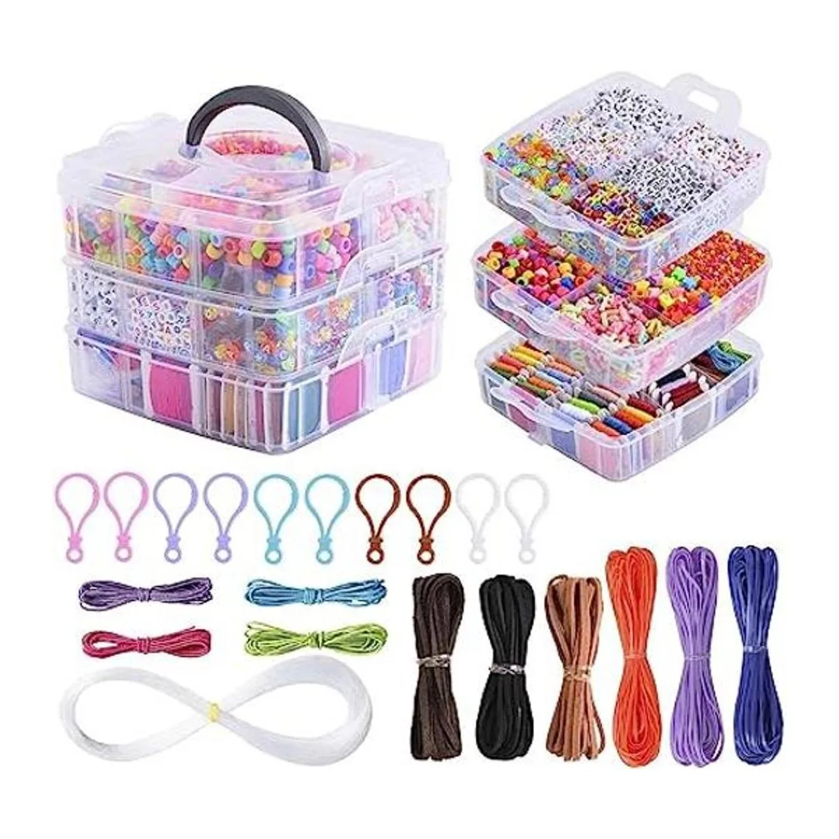Peirich Kits de cuentas para hacer joyas, incluye hilo de bordado de 44 colores con caja de almacenamiento organizadora de 3 niveles con hilos, más de 4900 cuentas para pulseras de amistad, regalo de Navidad y cumpleaños