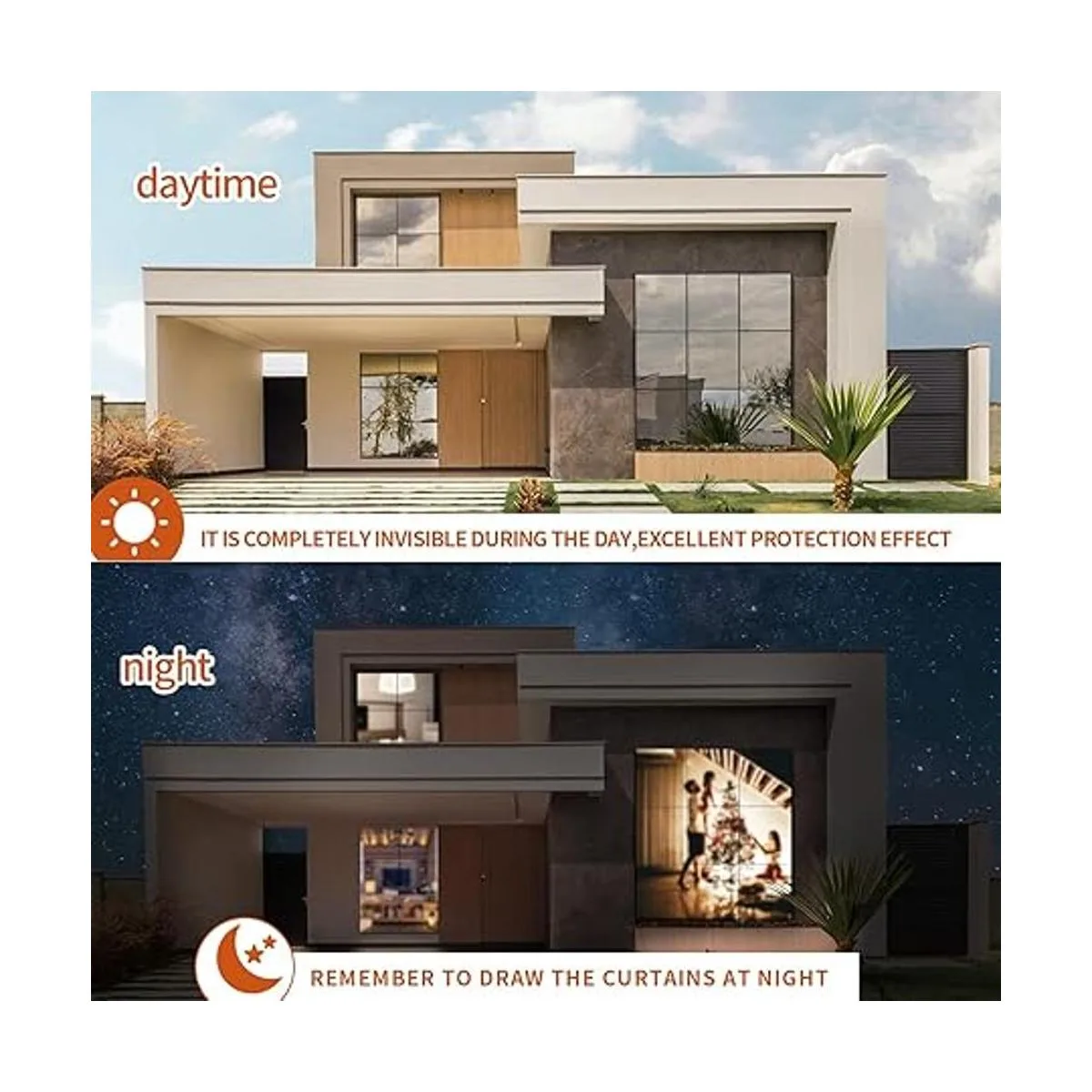 Protección de privacidad: Después de pegar la película en la ventana, desde el exterior se verá como si fuera un espejo durante el día, y te aseguramos que no se podrá ver el interior ni usando un telescopio. Pero desde el interior aun así se podrá ver claramente el exterior. También hace que la casa se vea más hermosa.
