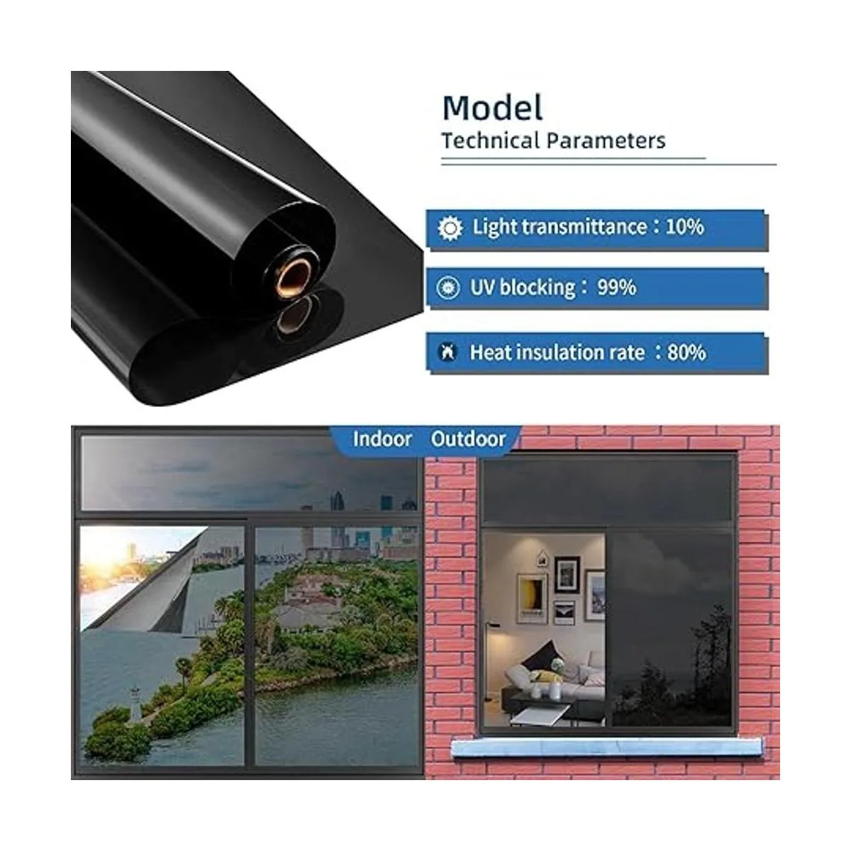 Película de control de calor para la ventana, lámina opaca para bloquear los rayos solares y proteger de los rayos ultravioletas, película reflectante de privacidad unidireccional, efecto espejo, a prueba de explosiones, hecha de PET de primera calidad, color negro cósmico, 17.5 pulgadas x 6.5 pies