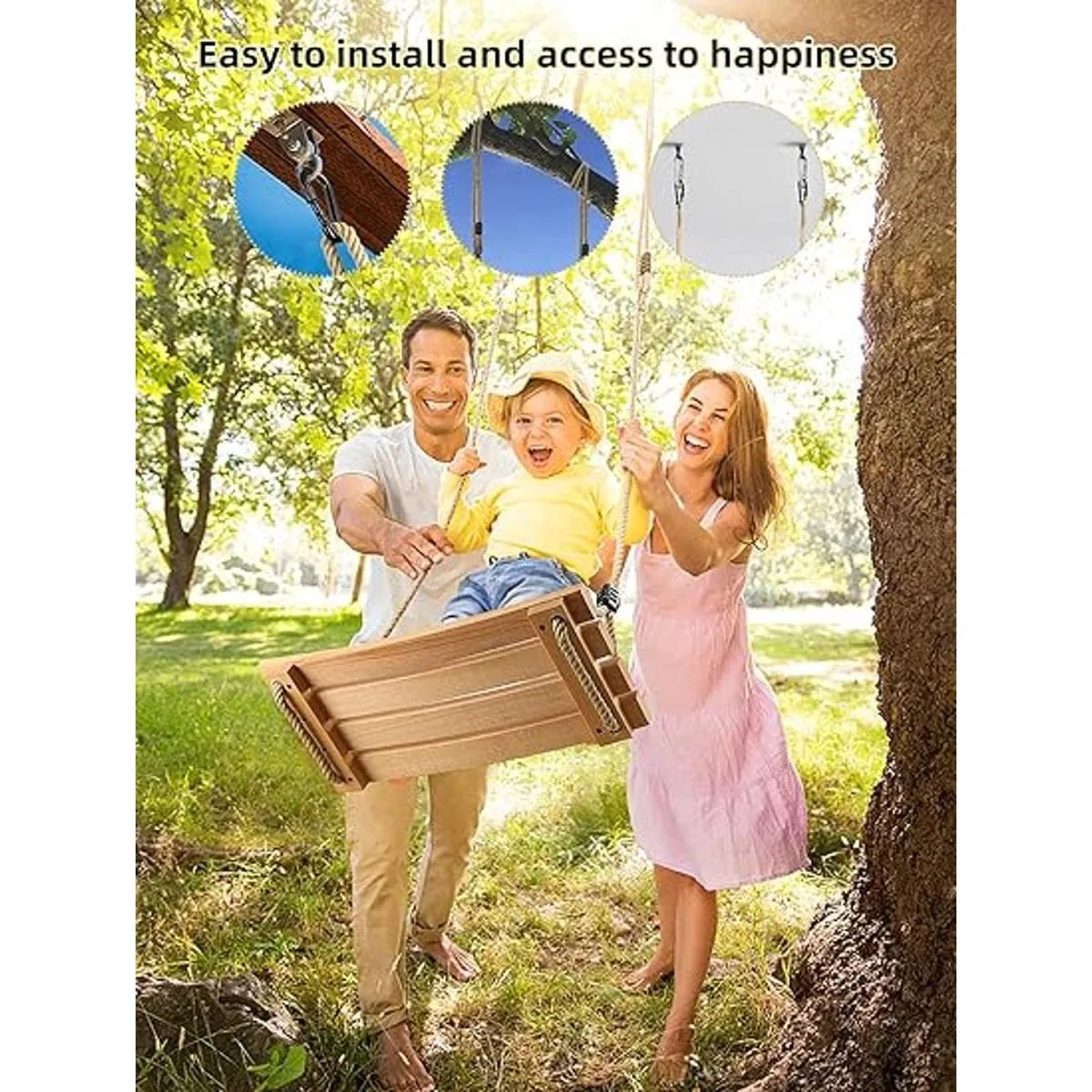 El material de madera de haya te proporciona seguridad y comodidad de uso. El columpio de árbol de madera con cuerda ajustable de 70.9 in y accesorios, se puede colgar fácilmente en la rama o viga. El cordel resistente puede mantenerse de pie a 220 libras. Los materiales de alta calidad permiten que este columpio resista el sol y el viento, incluso la nieve mientras mantiene su brillo.