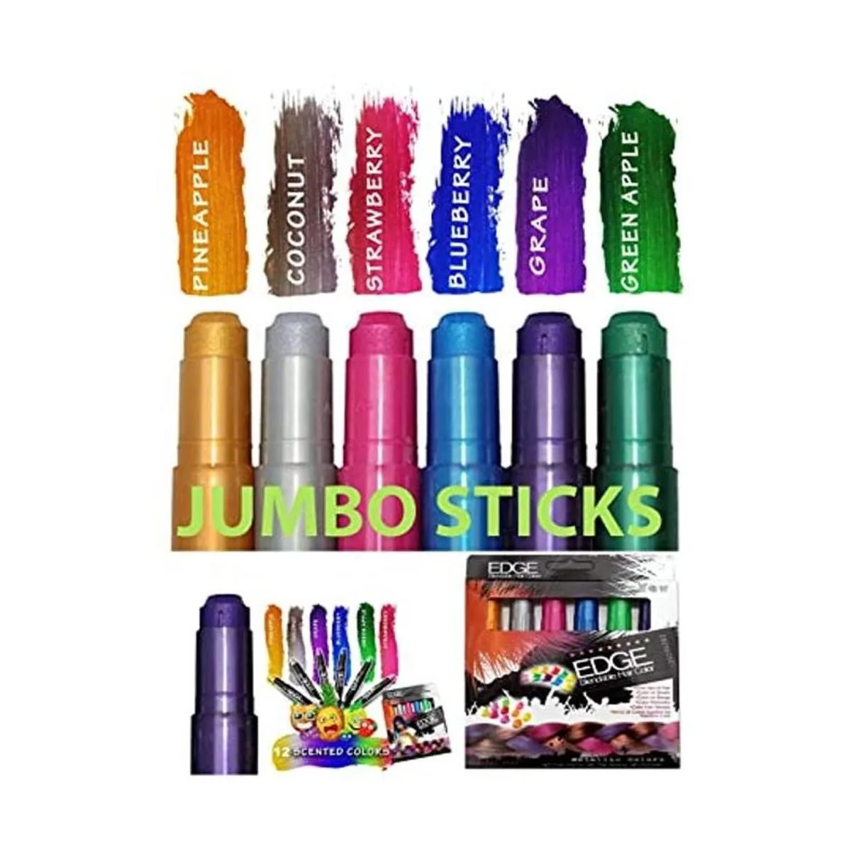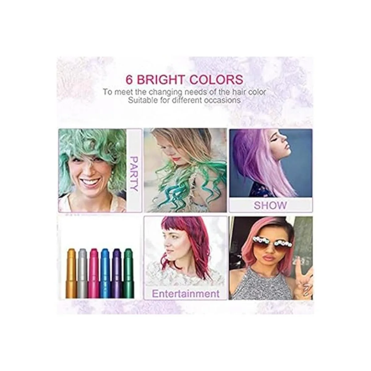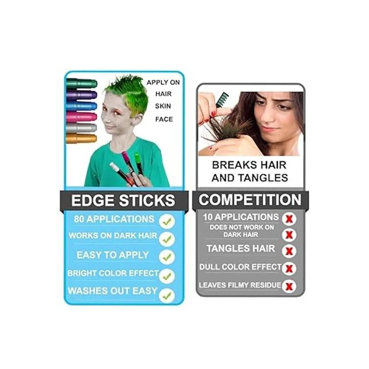 Pelo gis temporal para el pelo metálico brillo Color, Edge tiza, dura hasta 3 días, sin lío, construido en Sealant, 80 Aplicaciones por Stick, funciona en todos colores de cabello6 unidades.