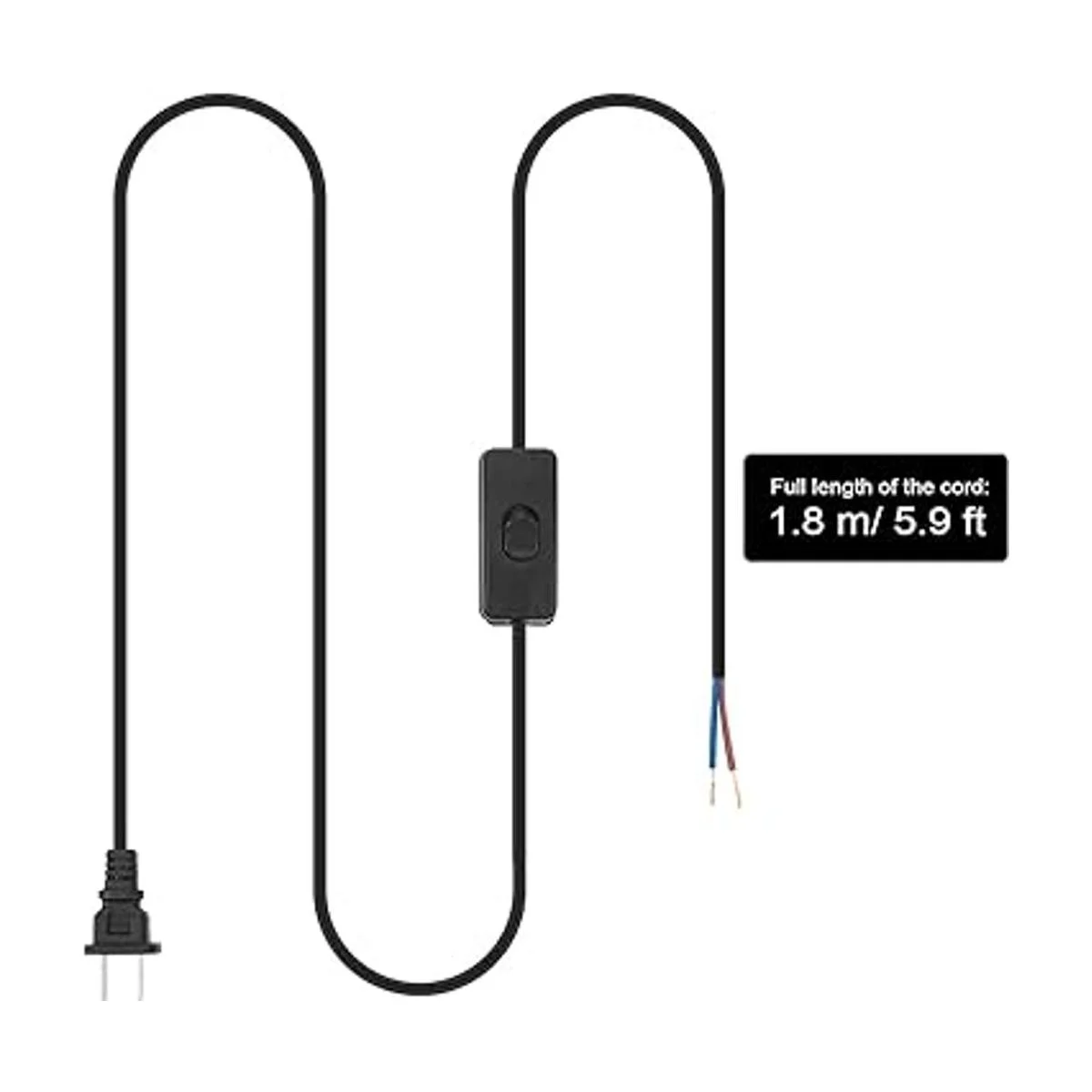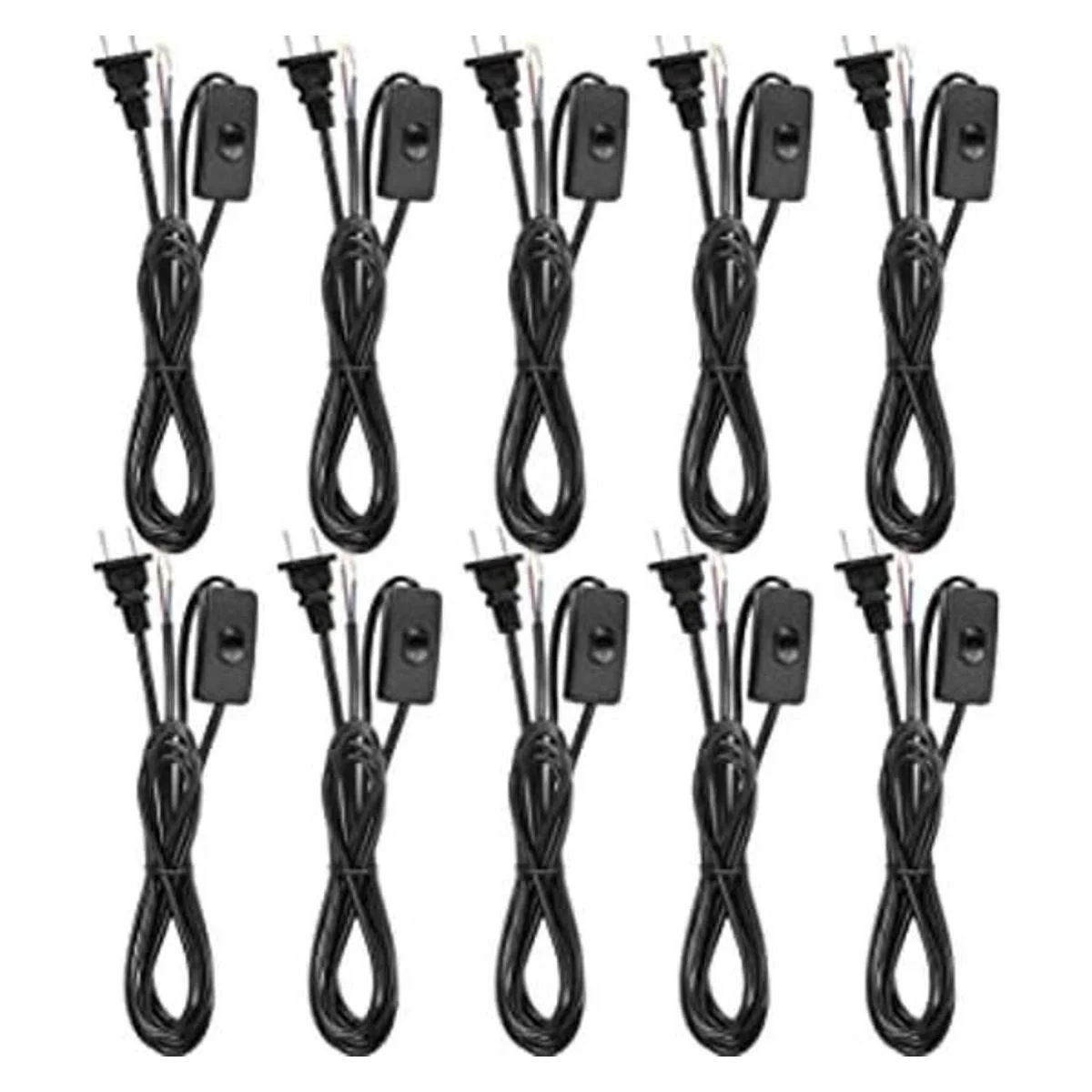 Pelopy Paquete de 10 cables de luz, cable de lámpara con enchufe moldeado, extremos pelados de cobre puro listos para cableado, 110220 V, 50 W6 pies5.9 ft, negro