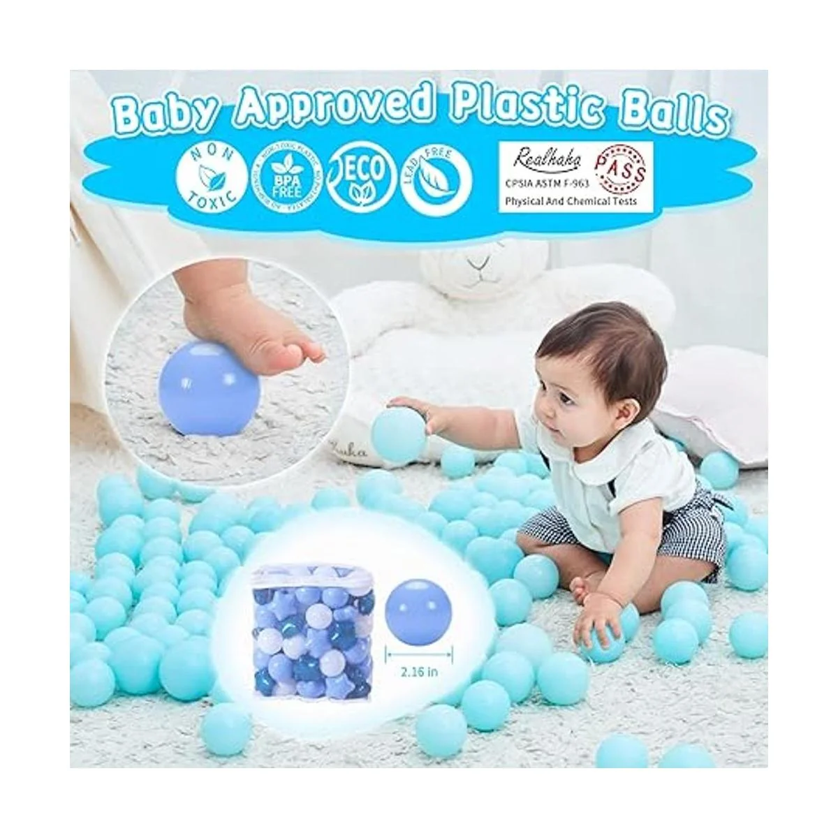 Pelotas de plástico aprobadas por el bebé para jugar a la pelota: los juguetes de bolas de parque para niños pequeños están hechos con material sin plomo y no tóxico. Sin olor a plástico. Mide 2.18 pulgadas de diámetro, tamaño perfecto y seguro para los bebés, evita la asfixia por tragar accidentalmente.