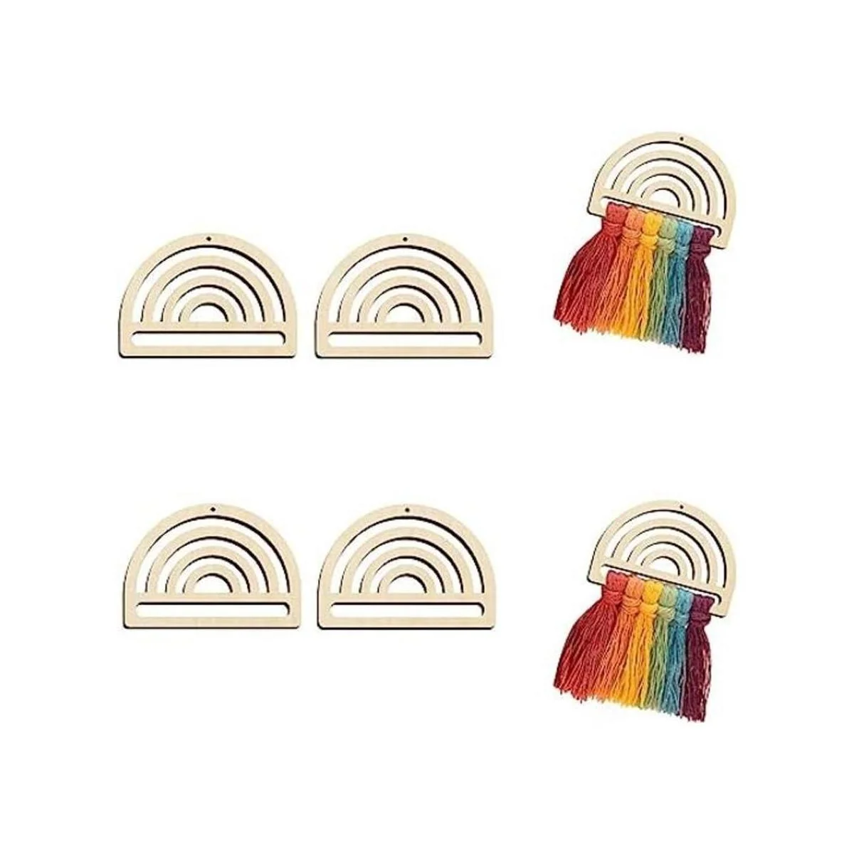 Pendientes de macramé en blanco con forma de arete de madera, pendientes de arco iris, colgantes para mujer, joyería de 1.6 x 1.1 pulgadas, 24 piezas
