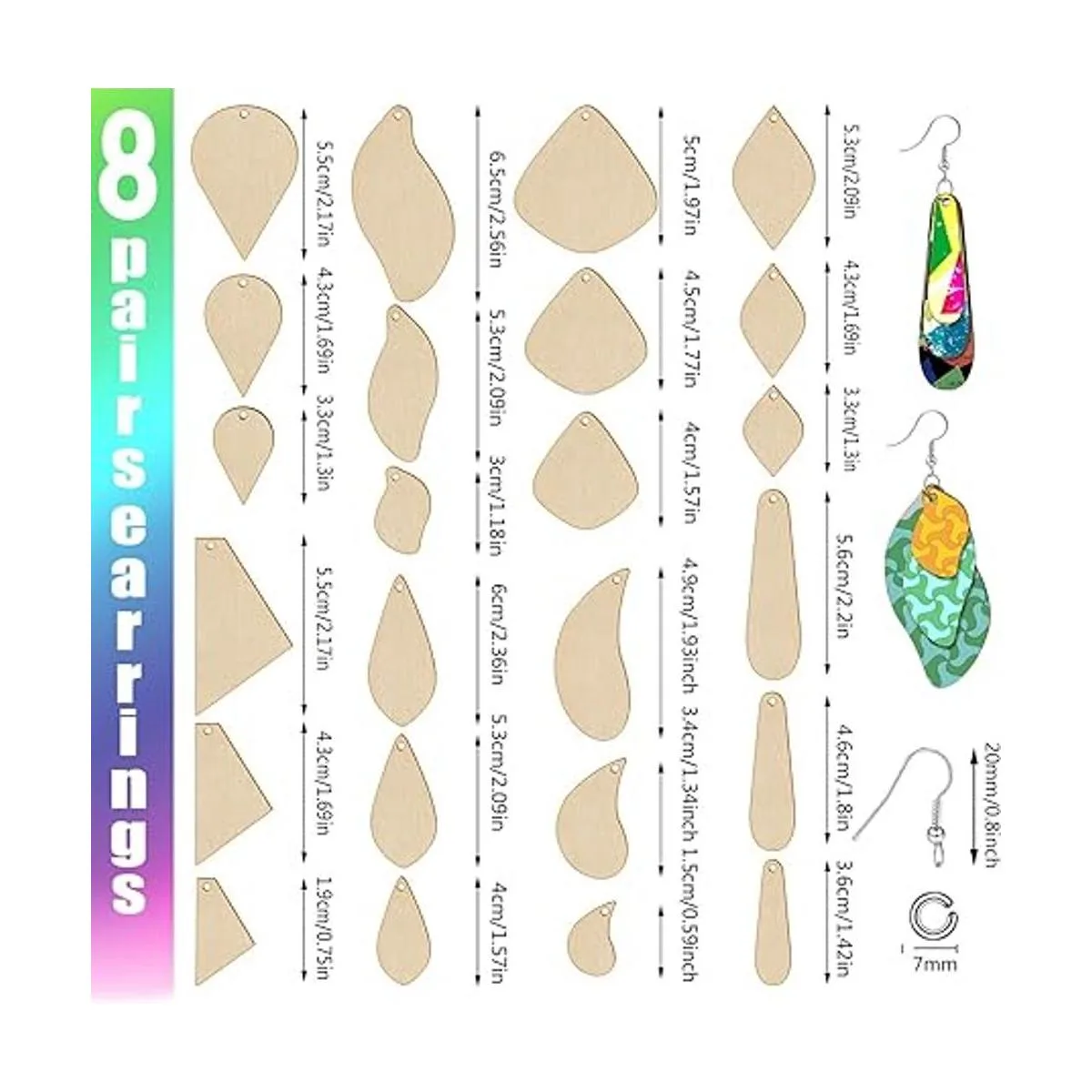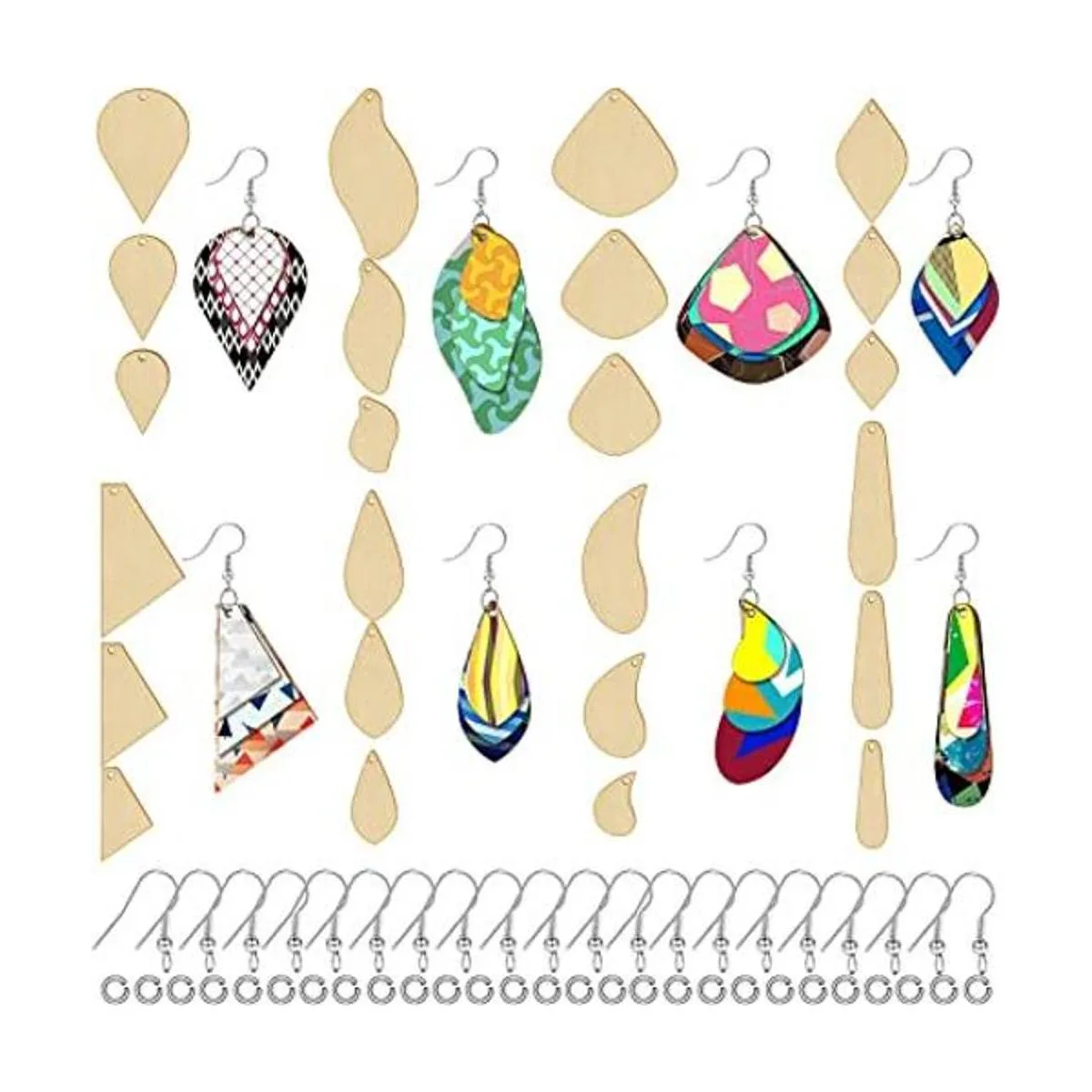 Suministros de bricolaje para aretes: los colgantes de madera están diseñados con superficies en blanco, lo que te permite diseñar diferentes patrones y hacer aretes llenos de estilo personalizado, puedes crear tus propios estilos mientras disfrutas de la alegría de hacer manualidades
