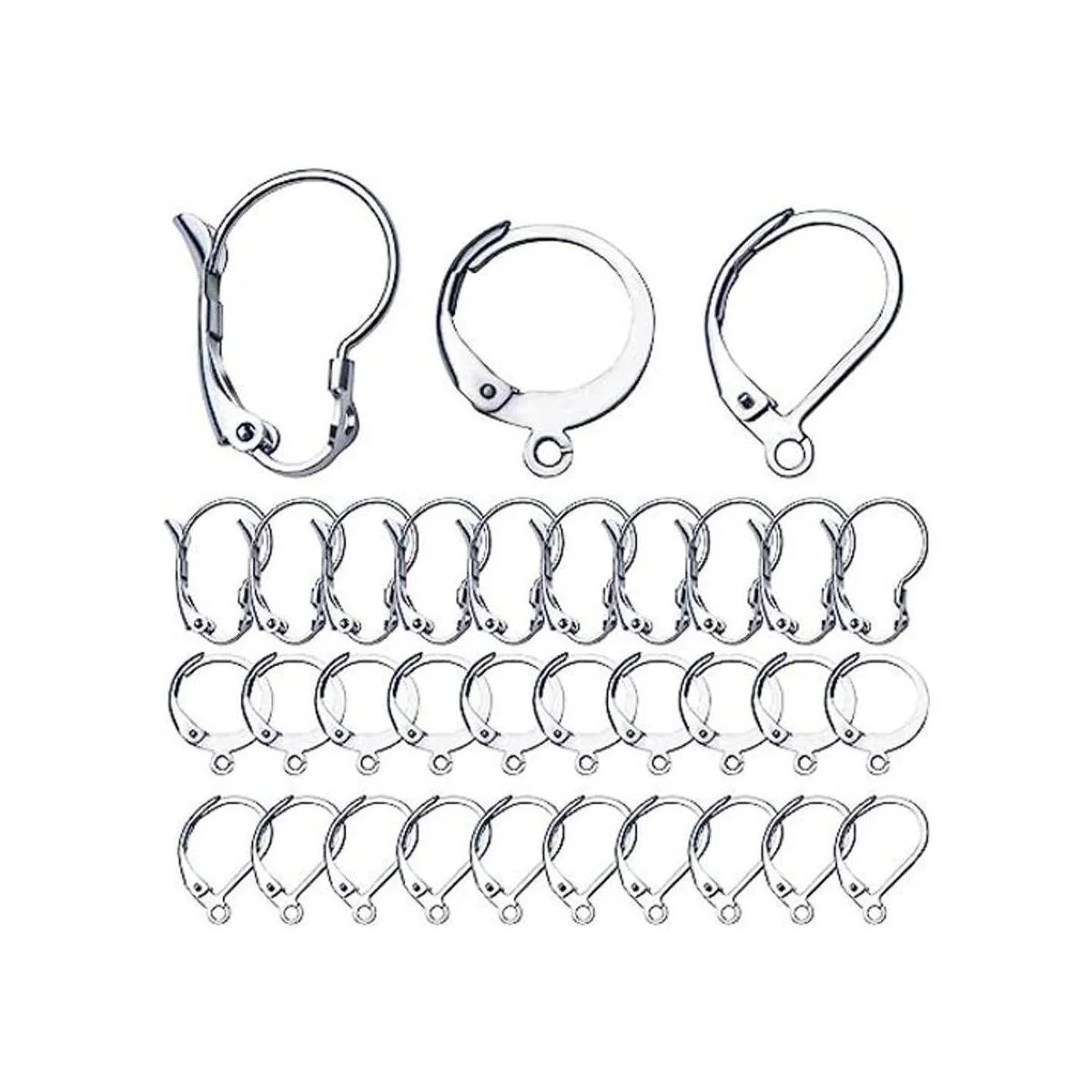 Pendientes de plata de leverback, 30 ganchos de acero inoxidable para orejas francesas, ovalados, redondos, para hacer joyas, manualidades