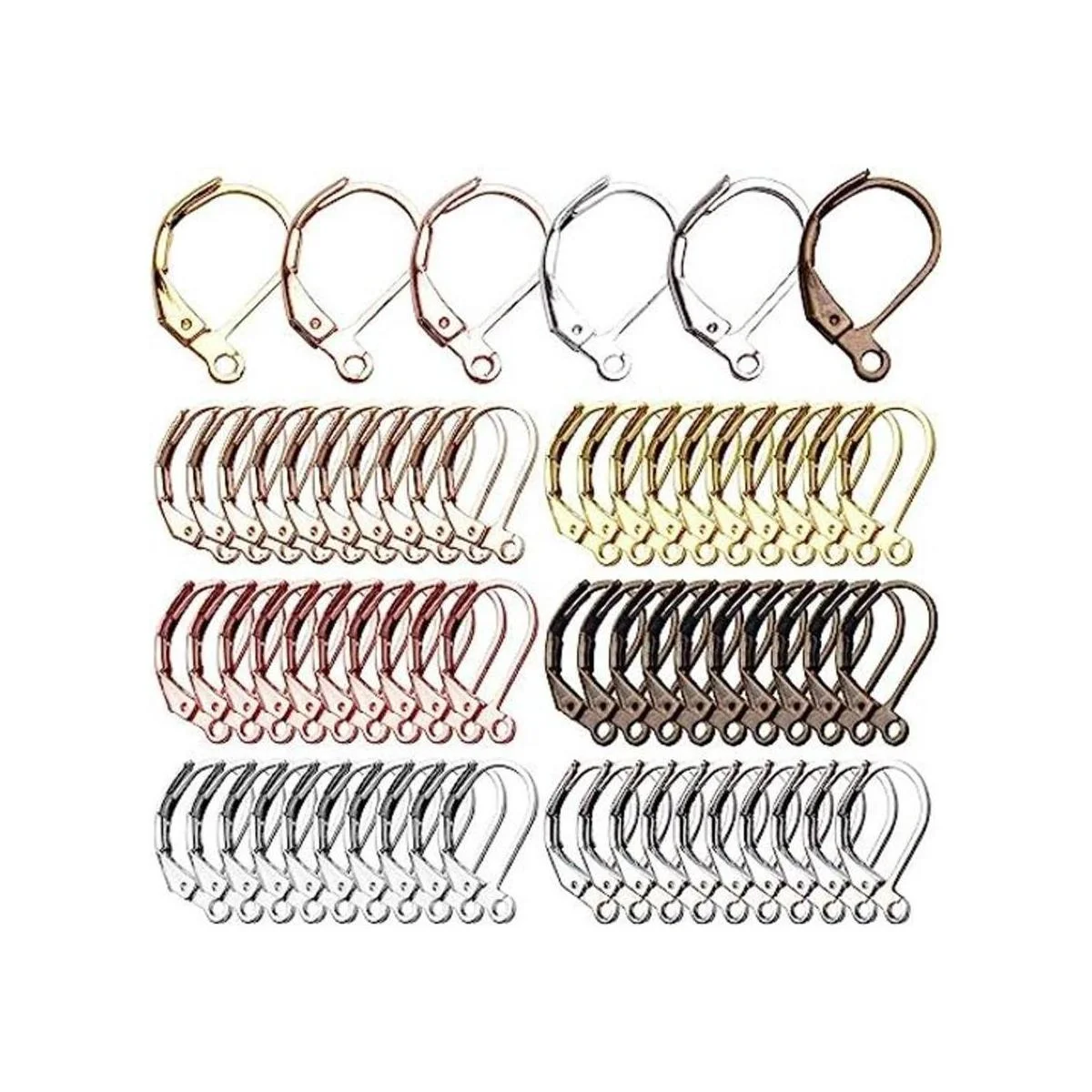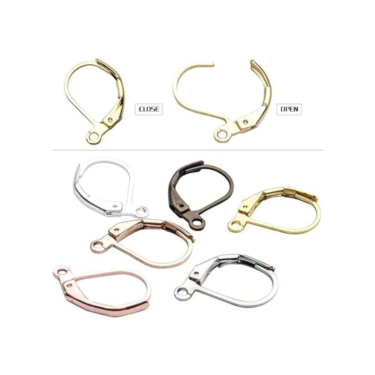 Pendientes ganchos con gancho, 60 ganchos para pendientes, estilo francés para hacer joyas, bronce antiguo, oro blanco, plata, oro, oro KC, oro rosa