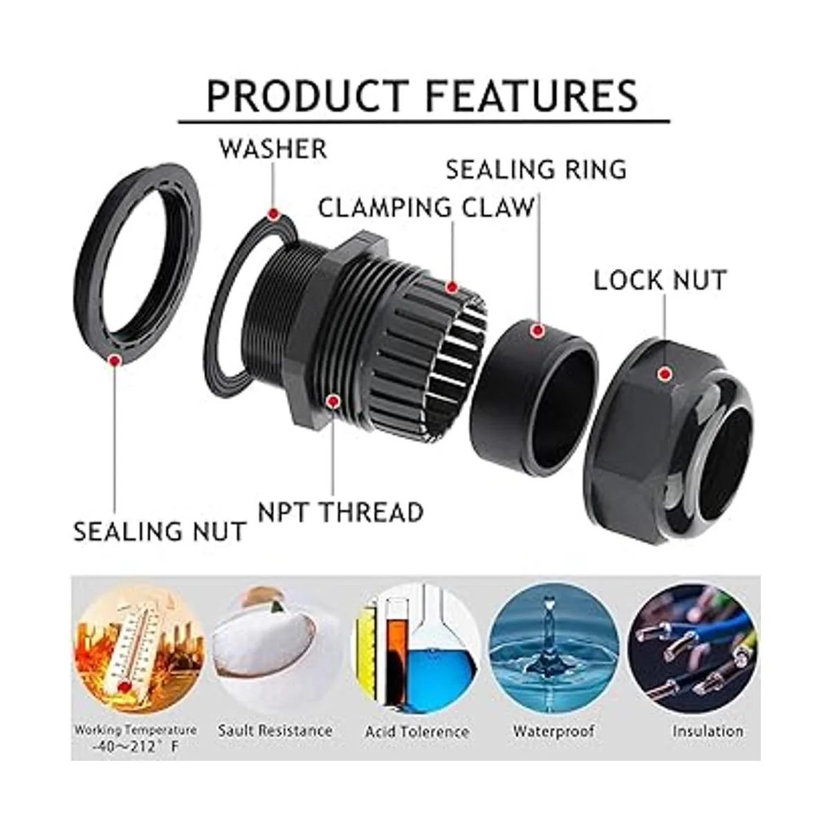 PENGLIN Conector de cable de nailon NPT de 12 pulgadas, conector de cable de alivio de tensión, tuerca de seguridad ajustable impermeable IP68 12 pulgada paquete de 20