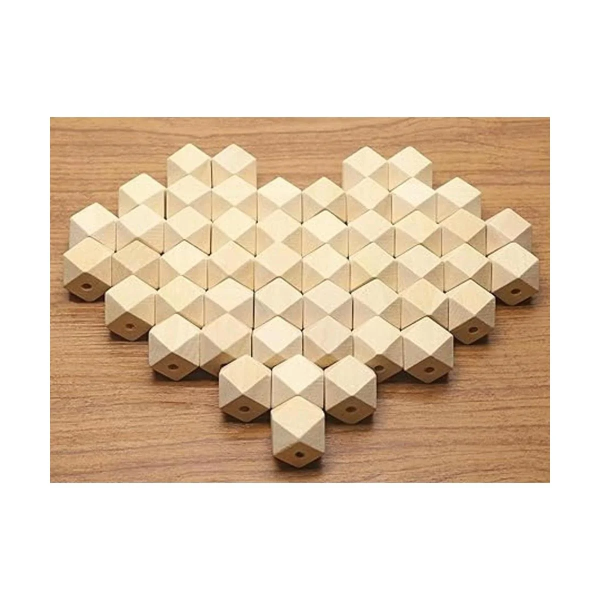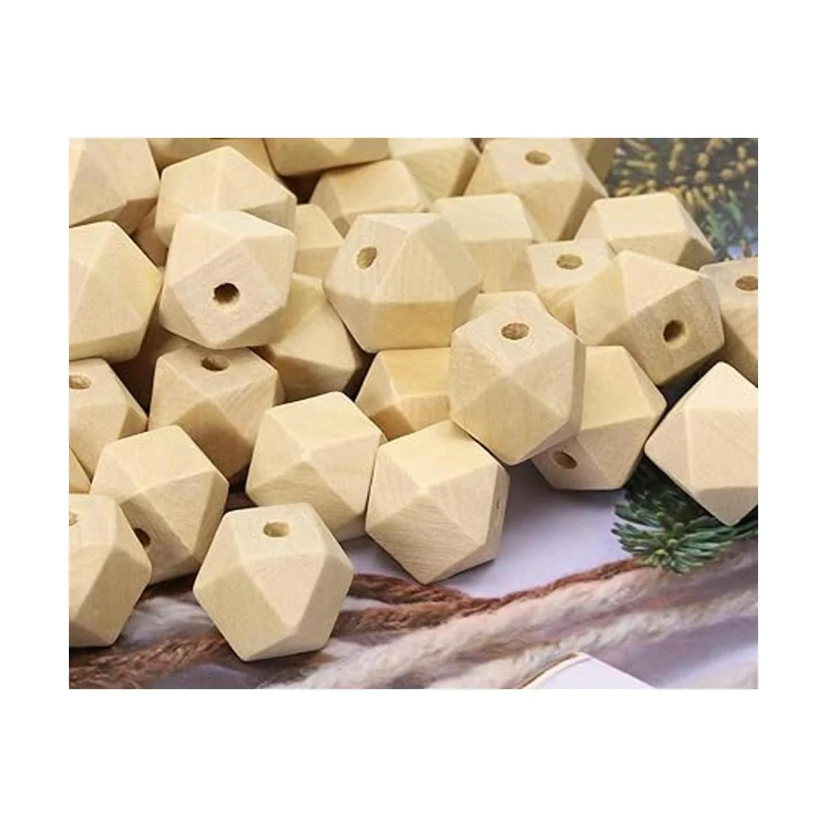 Penta Angel 100 cuentas de madera geométrica facetada sin pintar de 0.630 in0.63 pulgadas sin pintar, con forma de polígonos de color natural, cuentas espaciadoras de madera con agujero de 0.138 in para collar hecho a mano 0.630 in