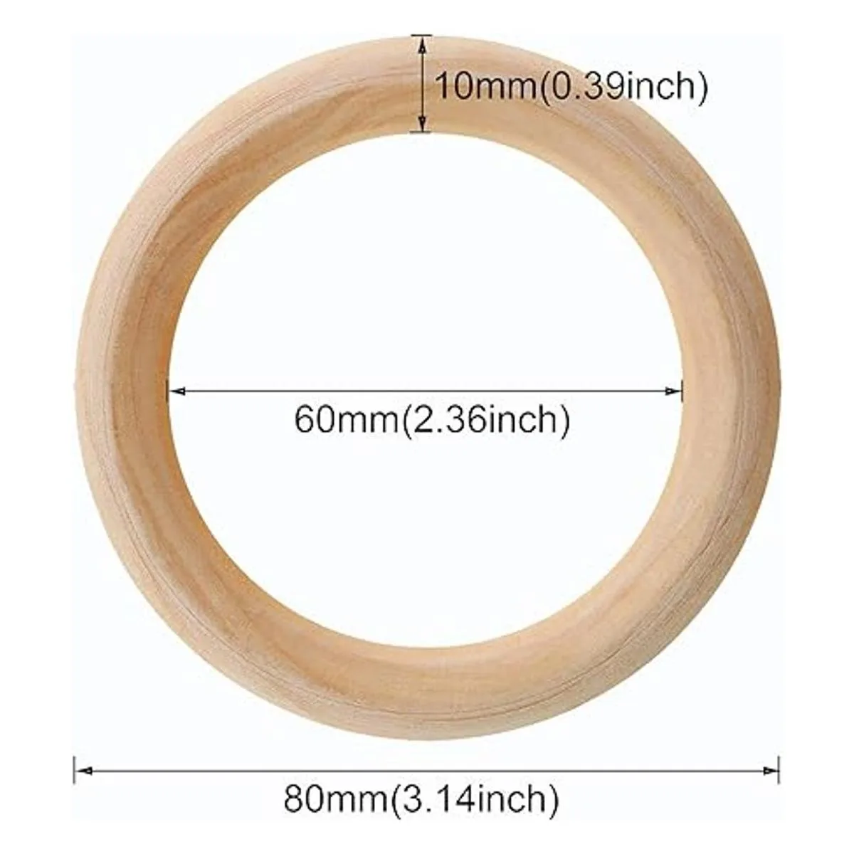 Penta Angel Anillos de madera, 10 anillos de madera maciza natural sin terminar de 3.150 in, círculos de madera lisa para manualidades, conectores colgantes y fabricación de joyas (3.150 in)