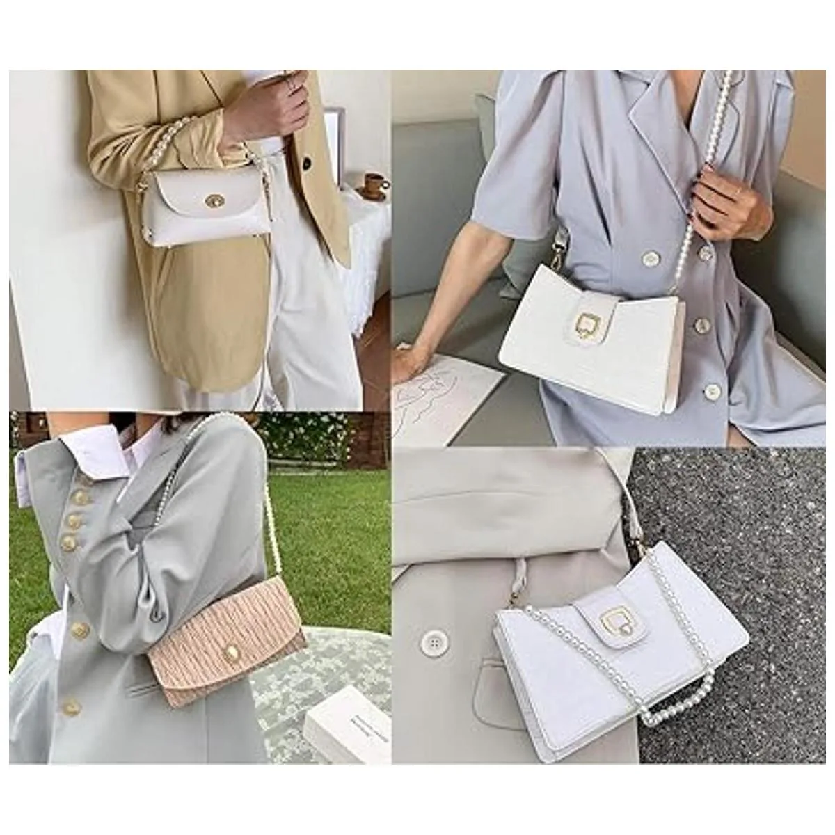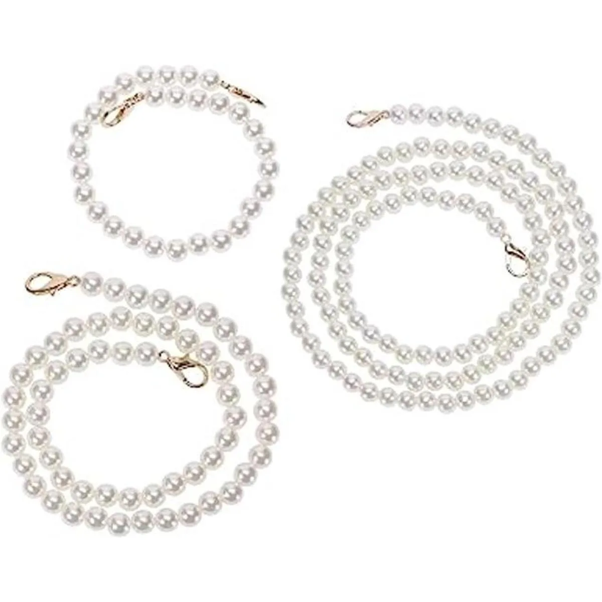 PENTA ANGEL Correa de cadena de repuesto para bolso, 3 piezas, cuentas de perlas de imitación, mango largo corto, bolso cruzado de hombro, accesorios de cadenas con hebillas de metal, Beige