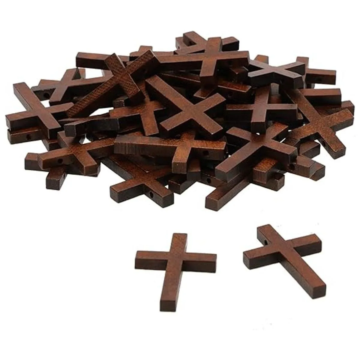 El paquete incluye 50 colgantes de cruz de madera en color marrón.