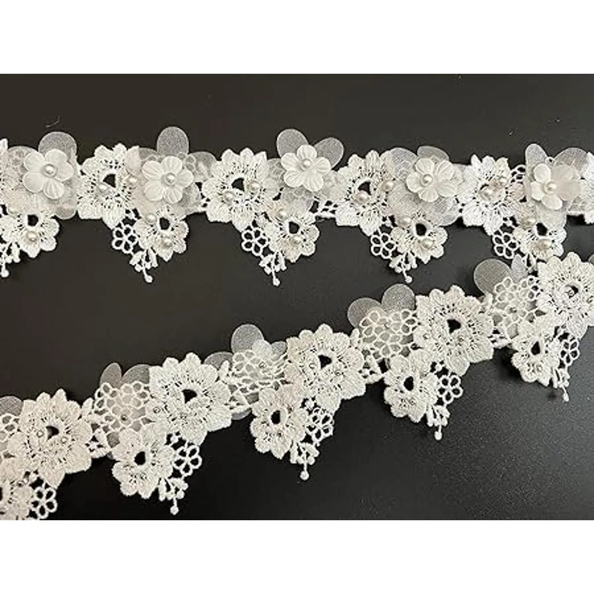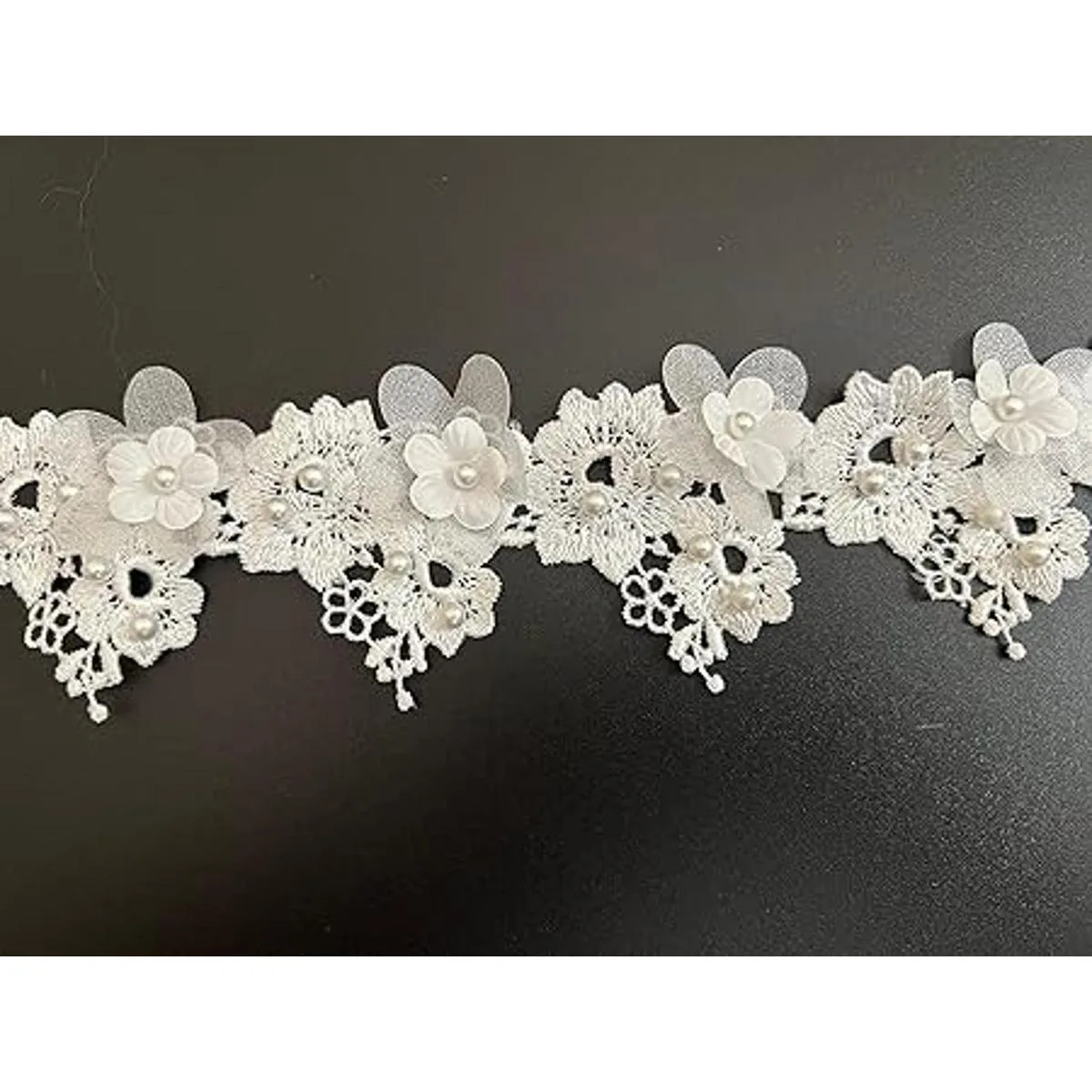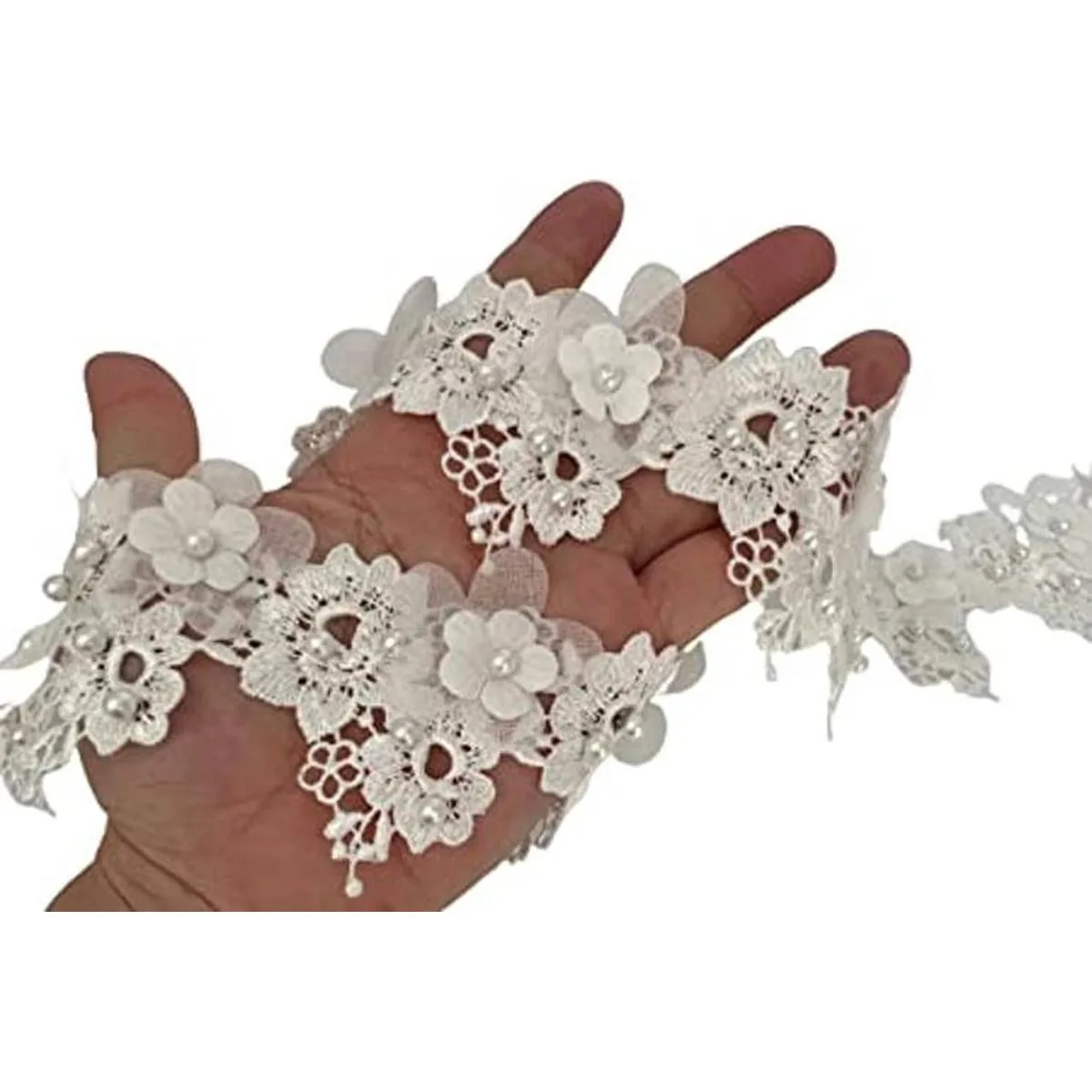 PEPPERLONELY 1 yarda de color blanco con flor de rosa perla bordada, cinta de encaje, apliques de boda, suministros para coser, decoración de manualidades, 2 pulgadas de ancho, blanco