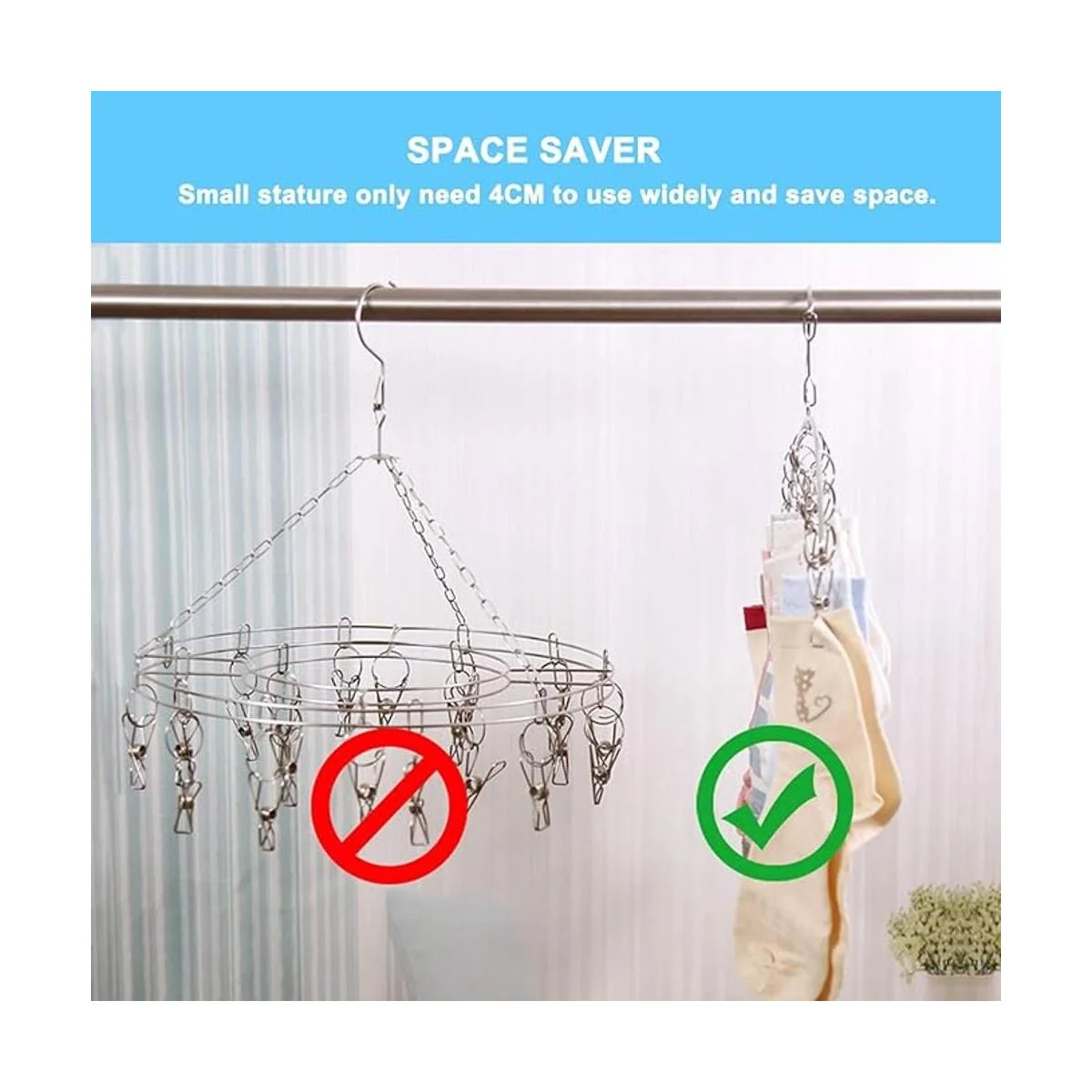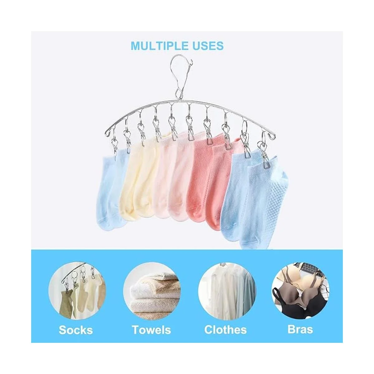 Percha de ropa con 10 clips Tendedero de secado de ropa Seropy 6 unidades, de acero inoxidable para calcetines, sujetadores, toalla, ropa interior, ropa de bebé