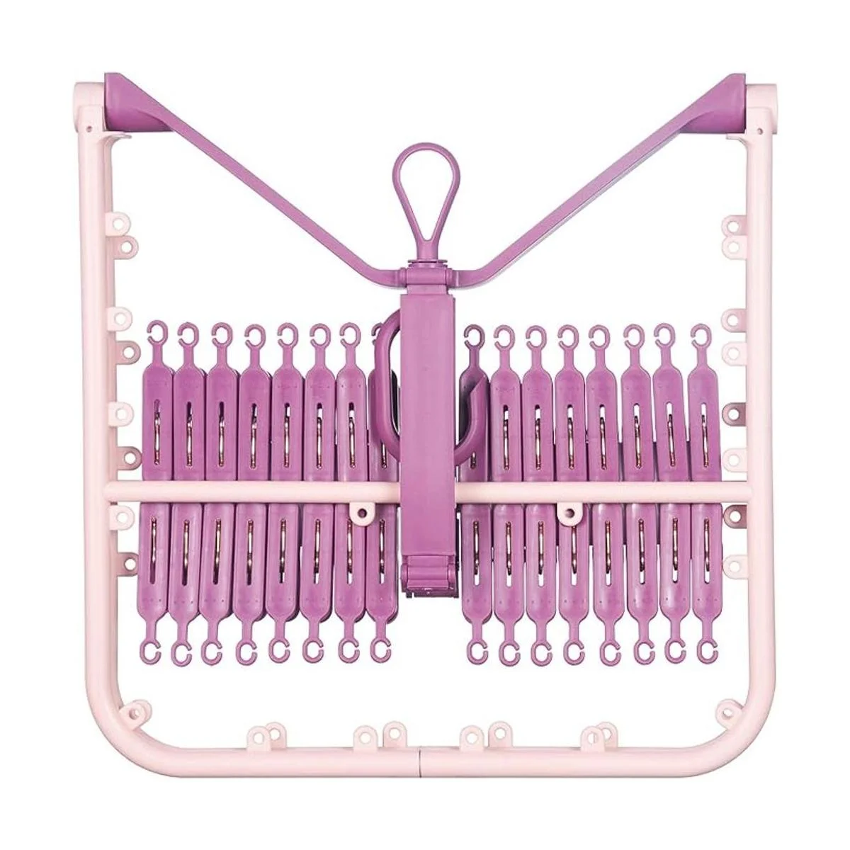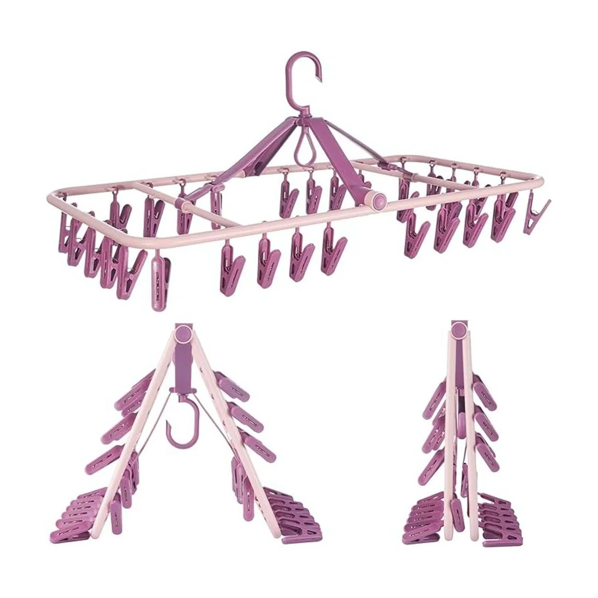 Perchas plegables con 32 pinzas para la ropa, ropa interior con clips, clip de plástico, colgador de secado por goteo para calcetines, brasieres, ropa de lencería resistente rosa