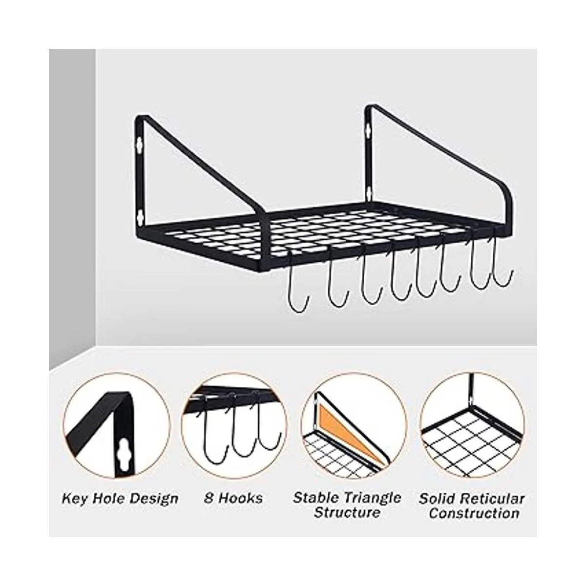 Estante multifunción para macetas El estante colgante para macetas puede ahorrar más espacio. Diseño simple y considerado para mostrar una cocina elegante, adecuado para cualquier estilo de decoración en la cocina. Además del almacenamiento de cocina, el maravilloso estante para ollas montado en la pared es muy adecuado para estudio, balcón, sala de estar, cafeterías y restaurantes.
