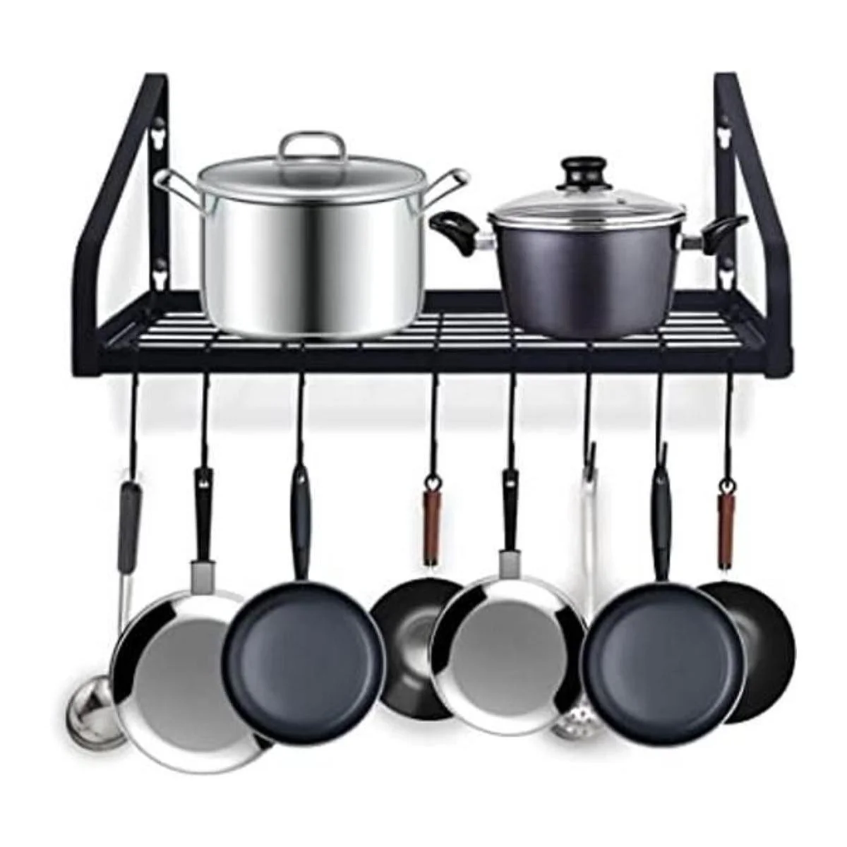 Perchero colgante para ollas para ollas y sartenes montado en la pared con 8 ganchos para utensilios de cocina, 2 métodos de bricolaje, sartén de acero negro y organizador para colgar ollas
